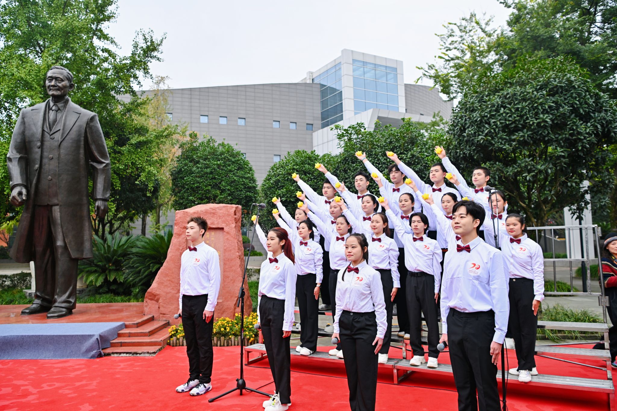“时光荏苒中华情,岁月如歌民族兴,学子万众绍岐黄,德泽千载为人民”。十月金秋,黉宇肃然,随着《成都中医药大学之歌》响彻校园,我们以纪念首任校长李斯炽先生仪式,寄后辈敬仰之情、立后学奋进之志。曾芳主持纪念仪式。