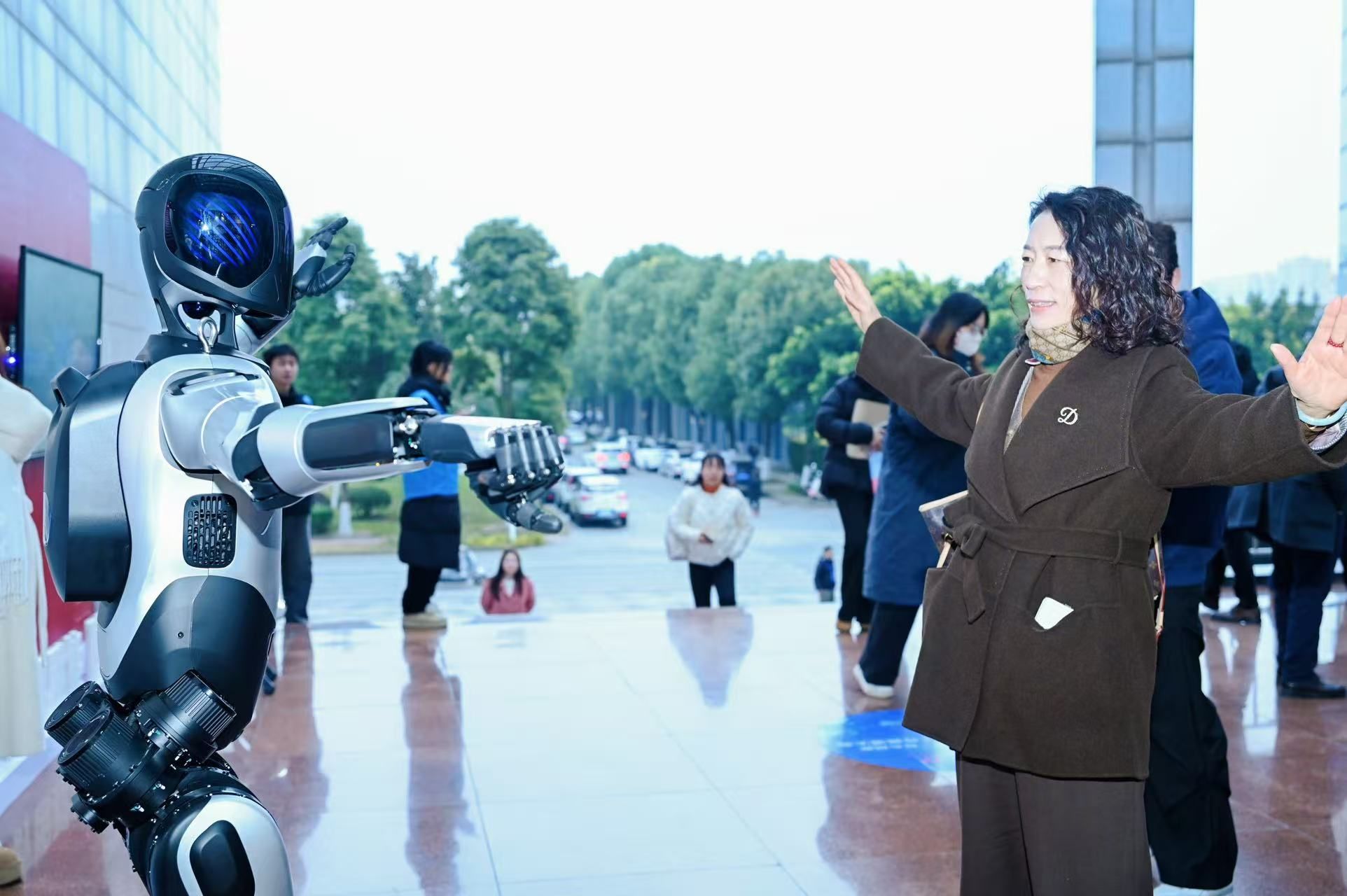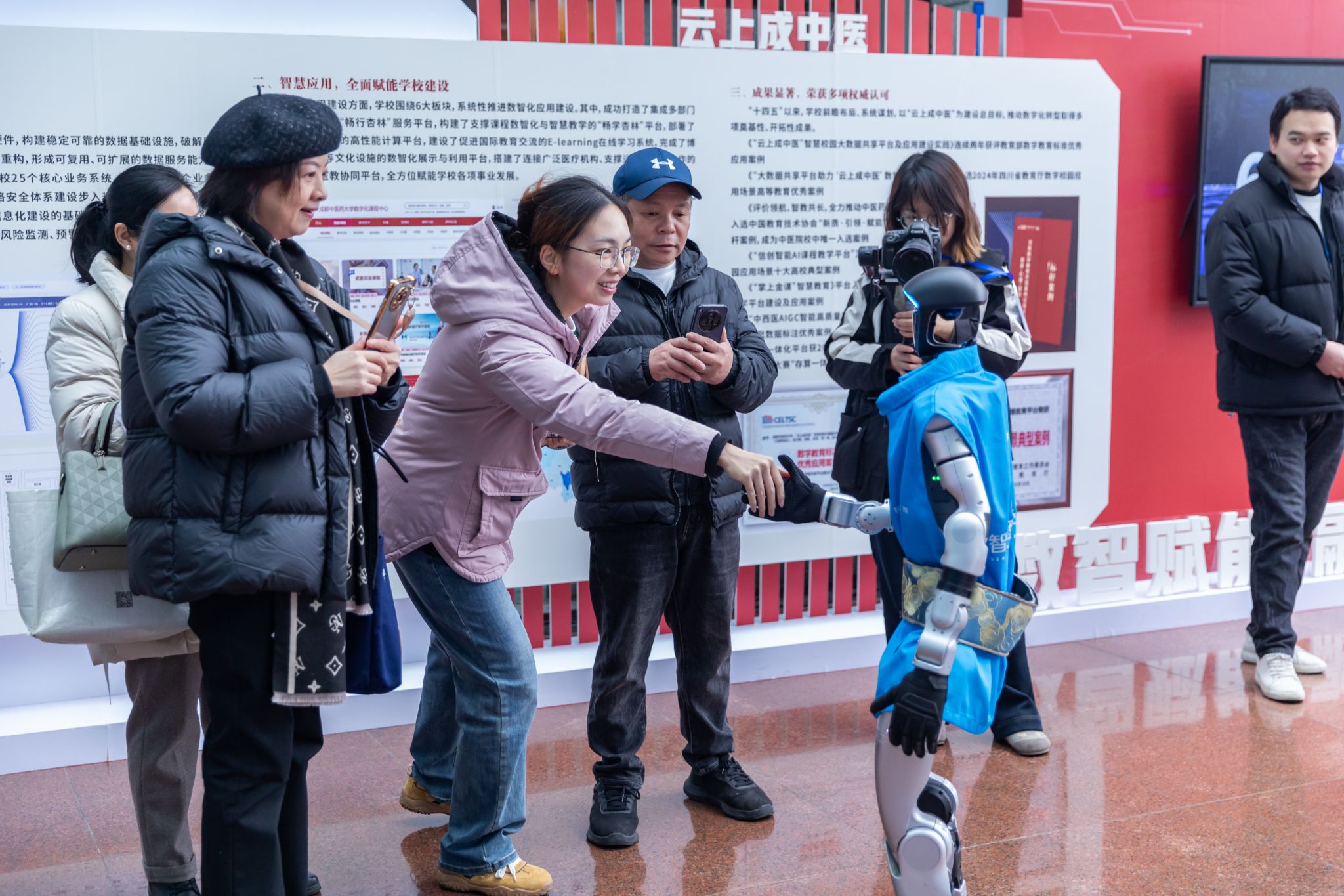 大会还设置了学校数智化建设系列成果专题展,会前师生参观了数智展厅并参与互动体验。机器人在现场讲解展陈内容,与大家互动交流,还献上“有模有样”的太极拳表演,赢得围观师生掌声与喝彩。在数字孪生AI服务平台互动体验区,只需要五分钟的数据采集时间,便可自动生成由数字人讲授的视频课件,参与数字人采集现场录制的教师感慨“体验感很好,操作也很便捷”。观看“畅学杏林”智慧教育服务平台AI课堂督导的展示后,在场教师表示:“数字化课堂的应用,将重新定义教师在课堂中的角色与作用,在课堂评价等方面引发教学变革,摒弃知识传授的传统课堂模式,真正将学生综合能力的提高作为课堂建设的主要目标。”
