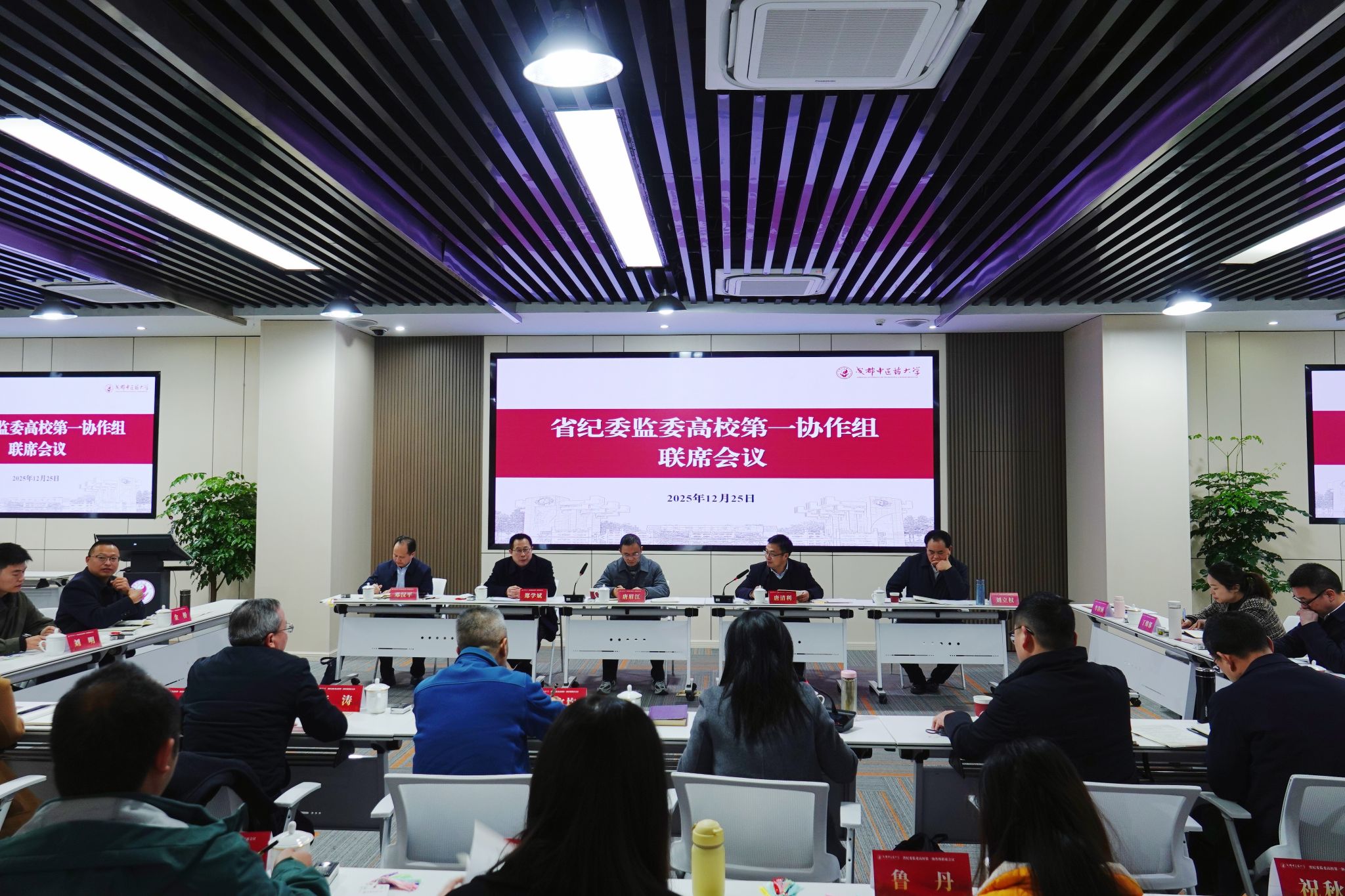 12月25日,省纪委监委高校第一协作组联席会议在我校召开。本次会议主题为聚焦“三化”建设,强化基层纪检组织监督专责,提升案件查办质效与联动协作水平。省纪委监委第一纪检监察室副主任唐眉江,驻成都理工大学纪检监察组组长、成都理工大学党委副书记、纪委书记唐清利,驻成都工业学院纪检监察组组长、校党委副书记、纪委书记刘立权,驻四川民族学院纪检监察组组长、校党委副书记、纪委书记邓汉平,驻成都中医药大学纪检监察组组长、校党委副书记、纪委书记郑学斌,以及驻各高校纪检监察组干部、基层纪委书记代表共计50人参加了本次会议。