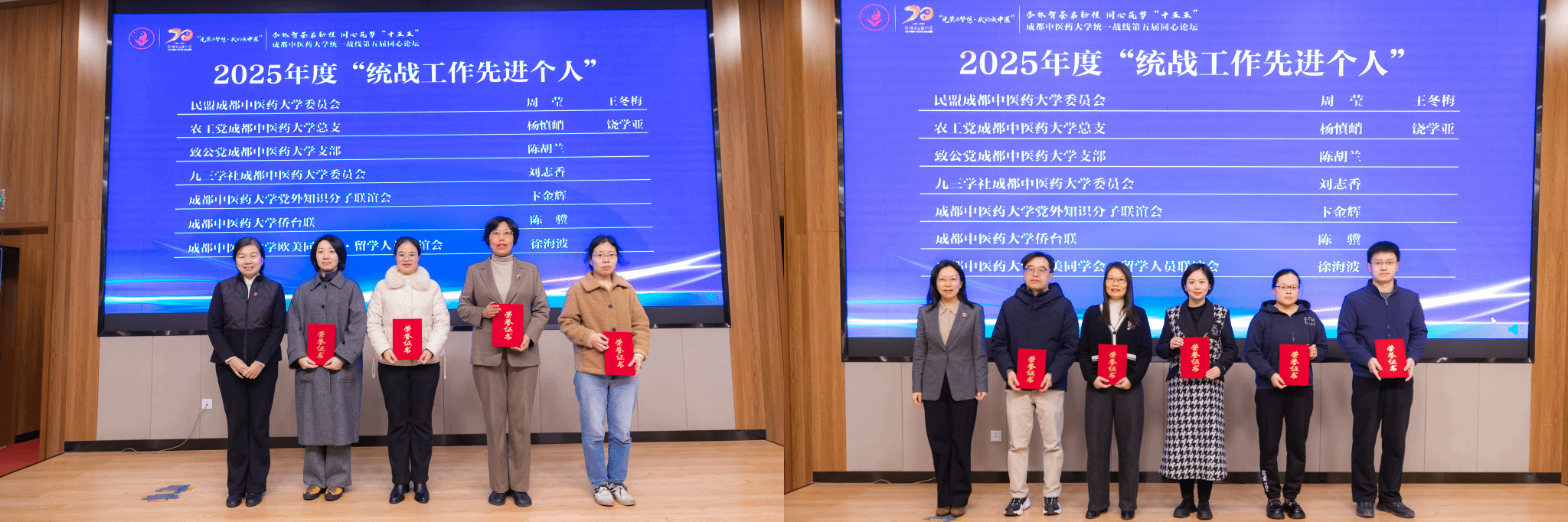 杨静在致辞中表示,“十四五”以来,学校统战工作始终坚持党的全面领导,强化思想引领,服务中心大局,谱写了新时代学校统战工作高质量发展的生动篇章。下一步,学校将持续深化建设“成中医”特色“大统战”工作格局,着力实施统一战线“英才计划”,精心打造统一战线“代表人士工作室”品牌平台,进一步集众智、聚合力,为学校“十五五”事业发展凝聚更加广泛的共识与团结奋进的力量。