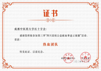 近日,在成都市血液中心联合川观新闻开展的第三季“四川高校公益献血事迹云展播”暨首届热血青年代言人计划活动中,我校红十字会荣获“热血团队”称号,护理学院罗春梅同学获评“热血青年代言人”称号。