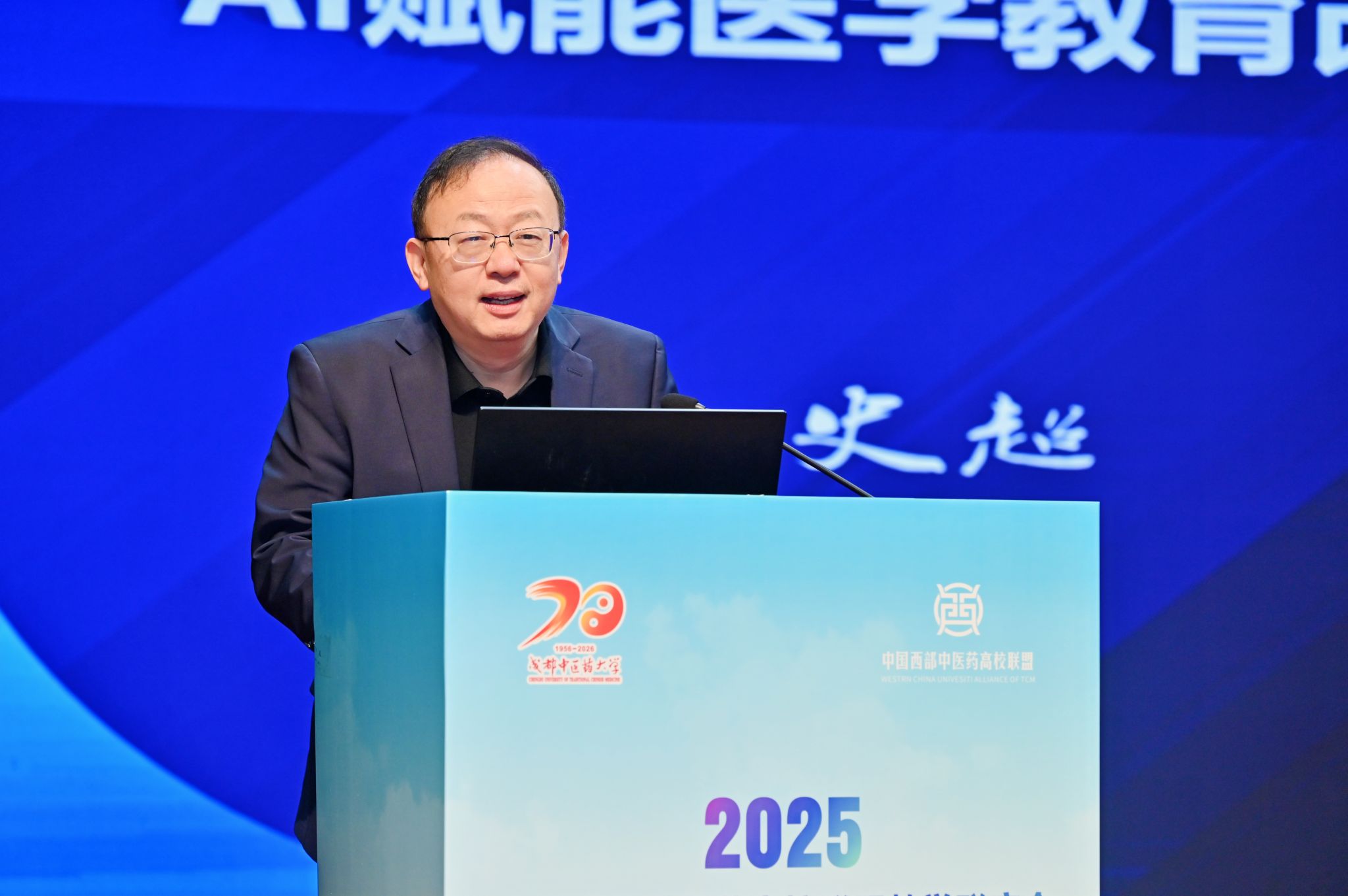主旨报告环节,教育部中医学类教指委副主任委员、成都中医药大学原校长余曙光作了《植根经典 数智赋能——中医药高等教育的现代师承模式改革与实践》主题报告。他提出,在教育数字化转型背景下,学校以现代师承教育为突破,聚焦“中医经典传承、思维能力培养、人机共教育人”三大变革,探索形成“理实融合的案例式体悟、虚实结合的沉浸式临证、人机协同的交互式指导、数据驱动的个性化施教”新路径,构建数据汇聚、智能感知、资源泛在、成长适配的师承教育新生态。