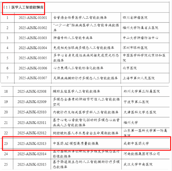 近日,工业和信息化部办公厅、国家药品监督管理局综合和规划财务司联合公布了2025年度人工智能医疗器械创新任务揭榜挂帅入围单位名单。我校温川飙教授团队牵头申报的“中医药AI模型高质量数据集”项目(项目编号:2025-AISJK-02013)成功入选。此次入选,标志着我校在中医药信息化与人工智能交叉领域的研究与应用能力获得了高度认可。