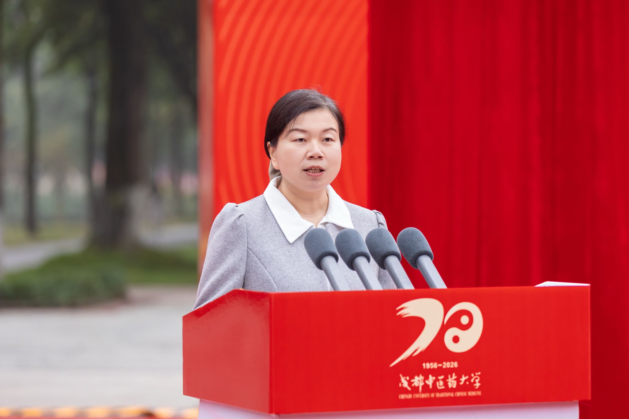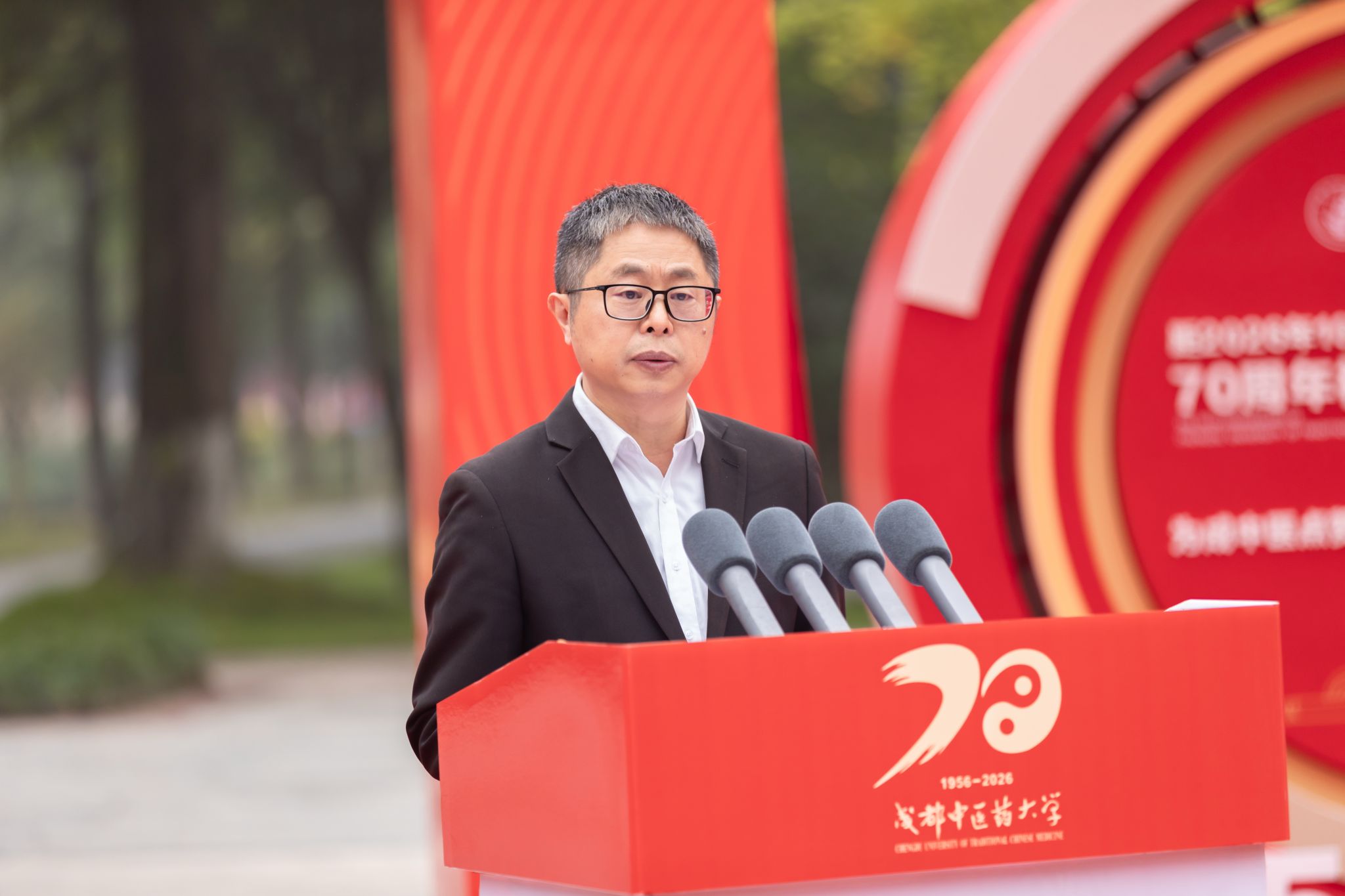 张泽钧在启动仪式上讲话,他指出,成都中医药大学七十年耕耘路,绘就了一幅与国同运、厚朴远志的创业画卷;谱写了一曲守正出新、砥砺前行的开拓之歌;收获了一幅同心致远、桃李天下的丰收图景;成都中医药大学的70年,是成中医与国家民族同呼吸、共命运,扎根中国西部的立业史;是成中医人用信念和热忱,将自身发展融入国家需要的奋进史;是中医药高等教育根植华夏文明沃土,生动彰显精神底蕴的发展史。