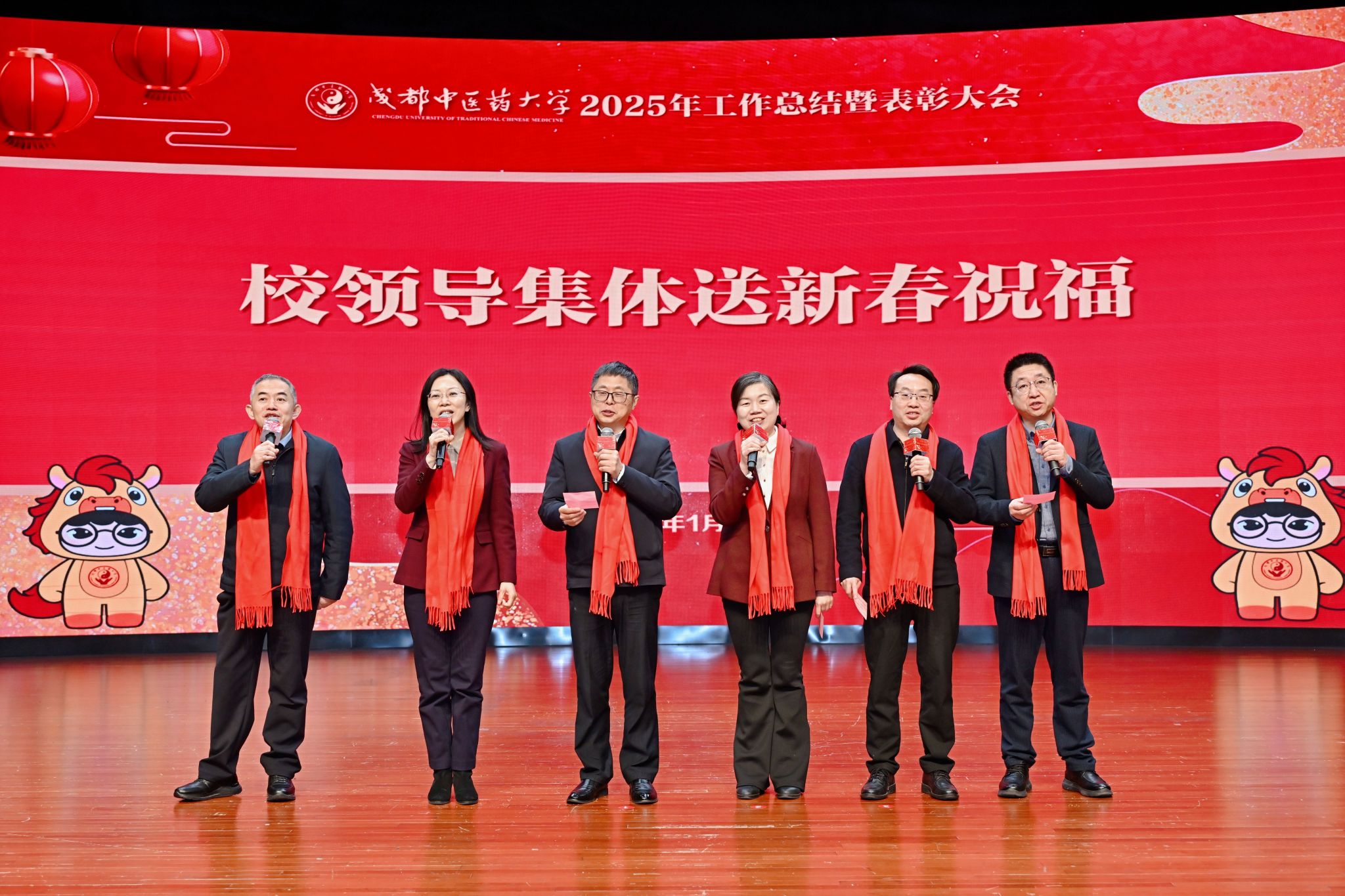 党委书记张泽钧代表学校党委和行政机关,向全体师生员工、医护工作者、海内外校友, 致以最诚挚的感谢与最美好的新春祝福。他表示,回望来路,成中医人以松柏之志,向下扎根、向上生长,结出累累硕果。在过去的一年,我们以“党建之红”淬炼“中医之魂”,以“守正之根”滋养“创新之叶”,以“攻坚之勇”探索“创新之海”,以“仁爱之光”守护“万家灯火”。每一份所取得的成绩,都源于平凡的坚守,每一次突破,都承载着默默地耕耘,每一位成中医人,都以涓滴之力聚沙成塔,汇集成学校奔腾向前的磅礴动能。