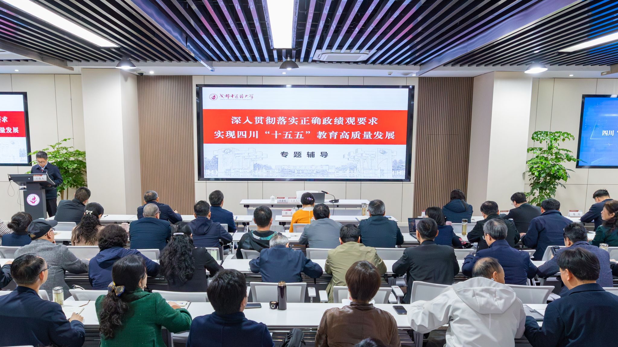 4月1日下午,成都中医药大学树立和践行正确政绩观学习教育读书班专题辅导(二)暨党委理论学习中心组专题学习在温江校区举行。学校党委理论学习中心组成员、全体中层领导干部参加此次学习。