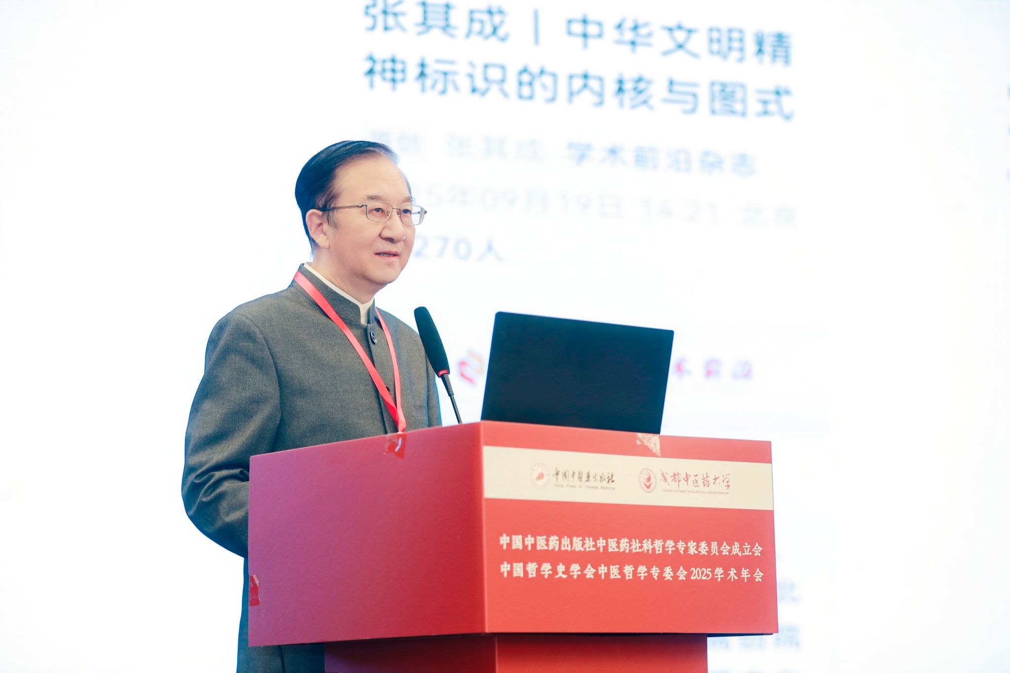 张其成在致辞中提出,中医哲学研究需强化三个关注:一、关注重大问题,加强中医原创思维、中医现代化、中医理论元范畴、生命伦理研究,聚焦中华文明复兴、全球治理等时代命题;二、关注学术前沿,开展《天回医简》的内涵挖掘等立足东方的中国古典学研究,构筑自主知识体系;三、关注传承传播,注重青年学者培养,推动学术承继,数智赋能文化传播,促进中医文化融入生活。