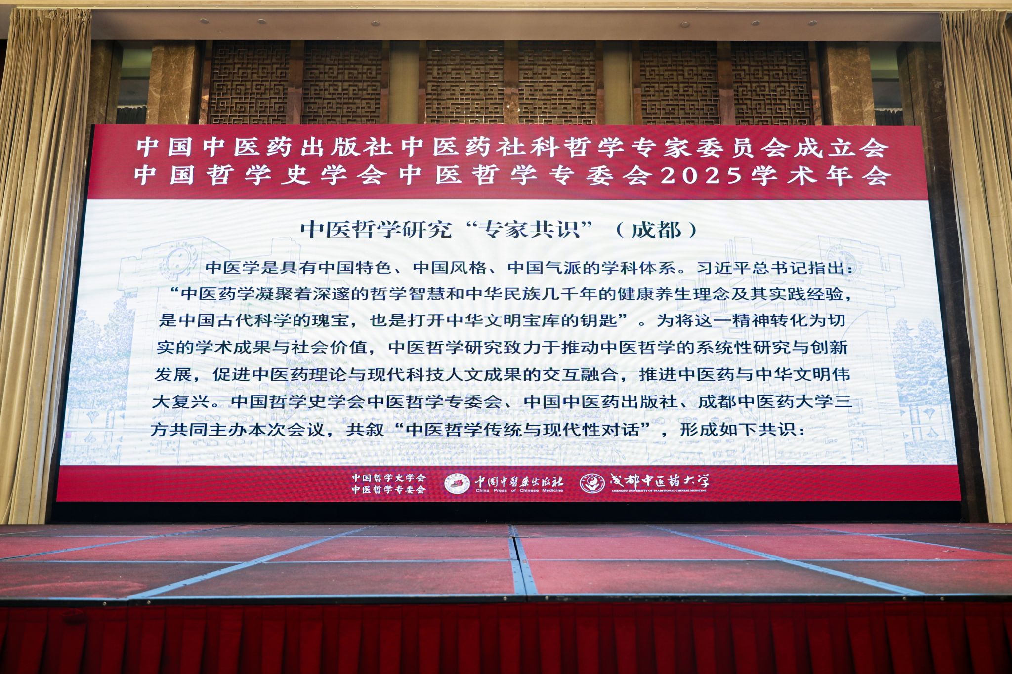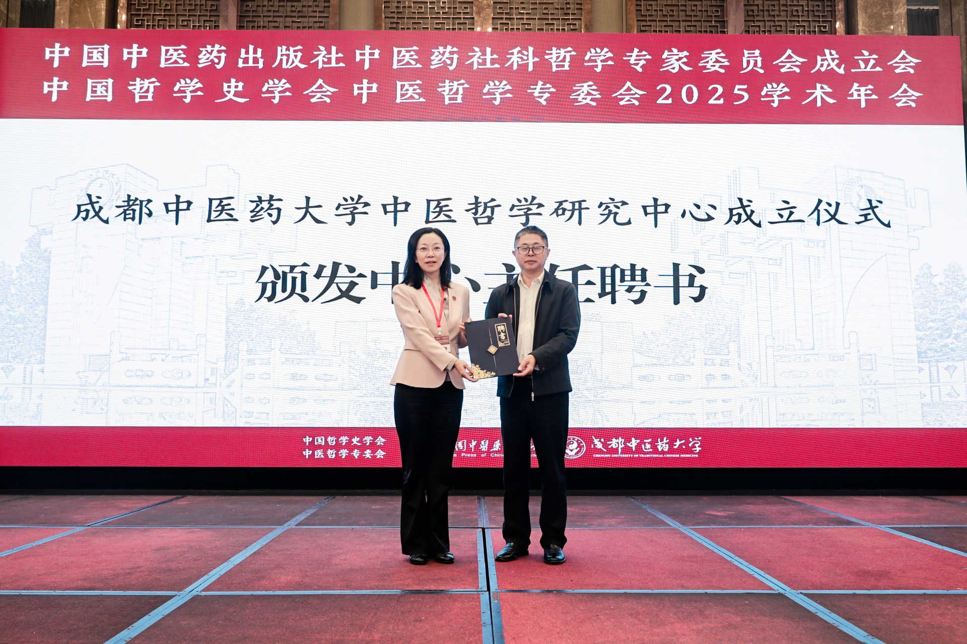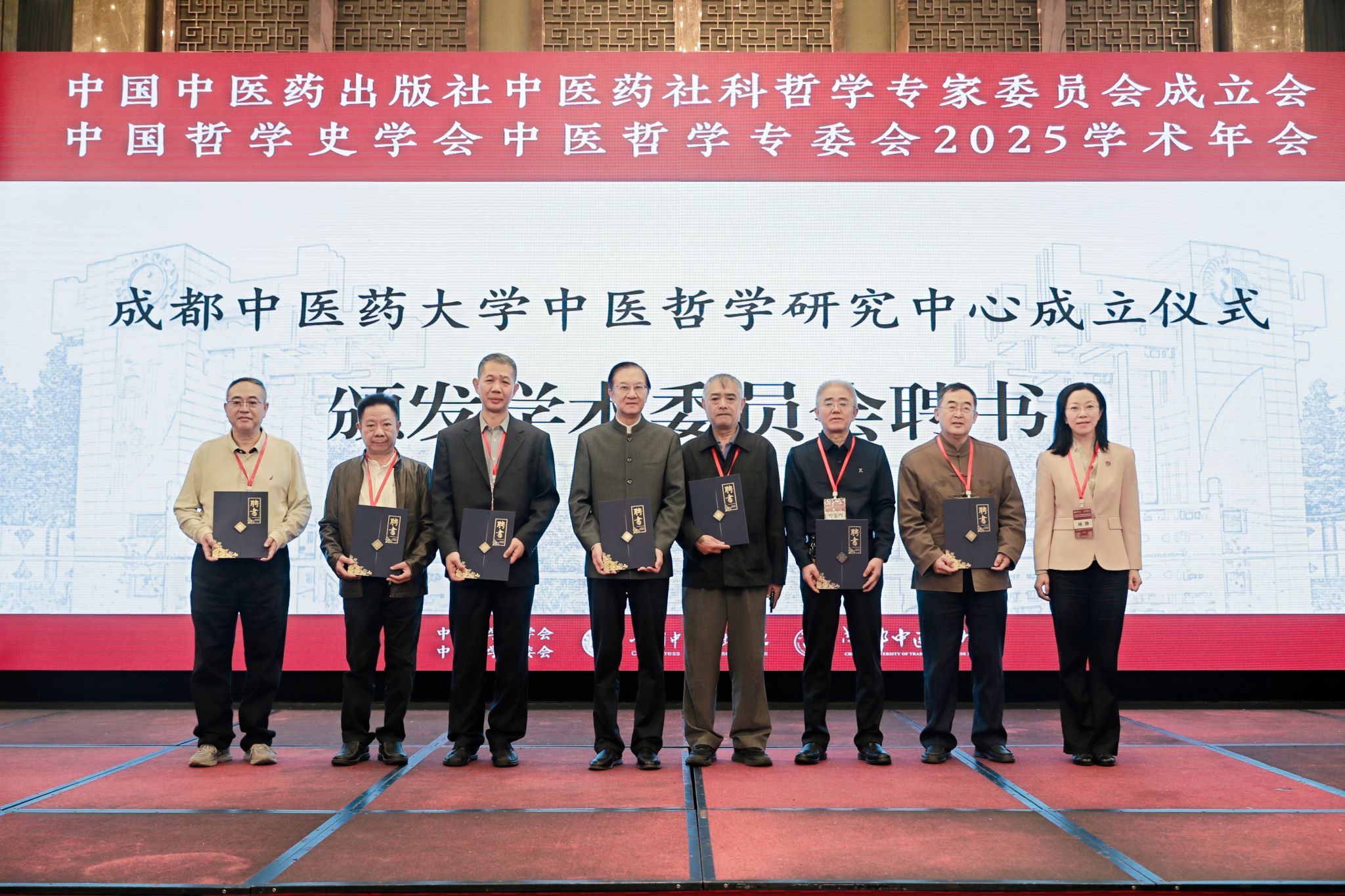 为深入贯彻落实国家中医药发展战略,积极推动中医药学与社会科学、哲学等人文领域的深度交叉融合,构建具有中国特色的中医药哲学理论体系,10月19—20日,由中国哲学史学会中医哲学专委会、中国中医药出版社、成都中医药大学共同主办的中国哲学史学会中医哲学专委会2025学术年会、中国中医药出版社中医药社科哲学专家委员会成立大会在成都召开,举行全国中医药院校首个中医哲学研究中心成立仪式,隆重发布“中医哲学研究专家共识(成都)”。