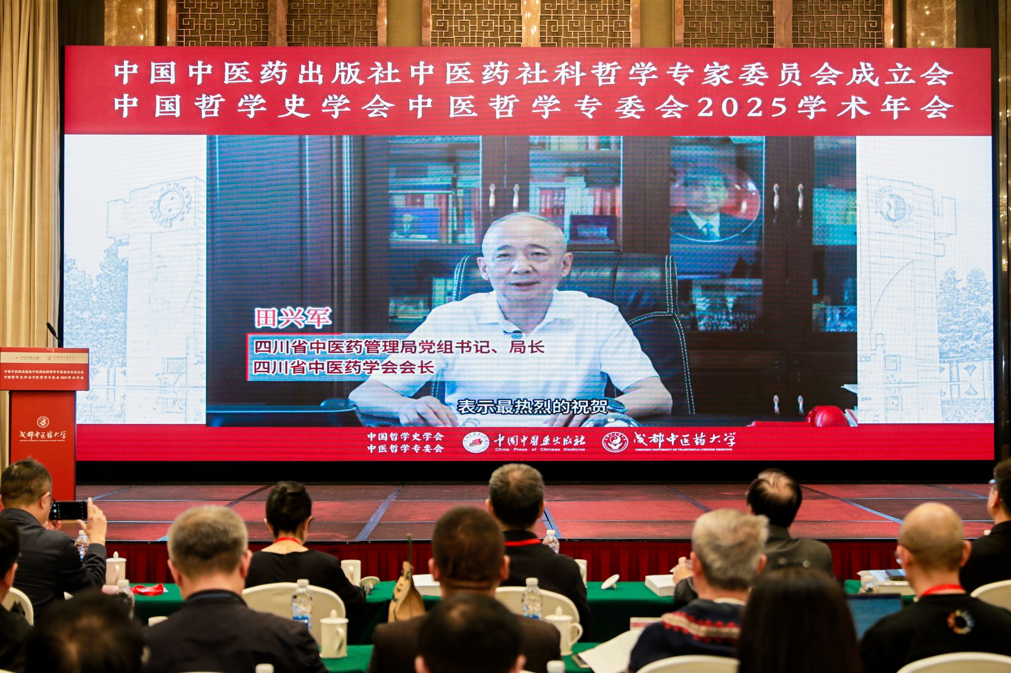 田兴军致辞强调,四川省素有中医之乡、中药之库的美誉。本次大会的举办,是对四川中医药工作的强力支持,也是对四川中医药文化积淀和发展成果的肯定。成都中医药大学是服务四川中医药高质量发展的中坚力量,有着深厚的中医哲学研究历史和丰硕的研究成果。成都中医药大学在全国中医药领域率先成立“中医哲学研究中心”,是学习贯彻落实习近平总书记指出的“中医药学凝聚着深邃的哲学智慧”的重要举措。此次会议的累累硕果,必将转化为推动中医药传承创新发展的新动力。