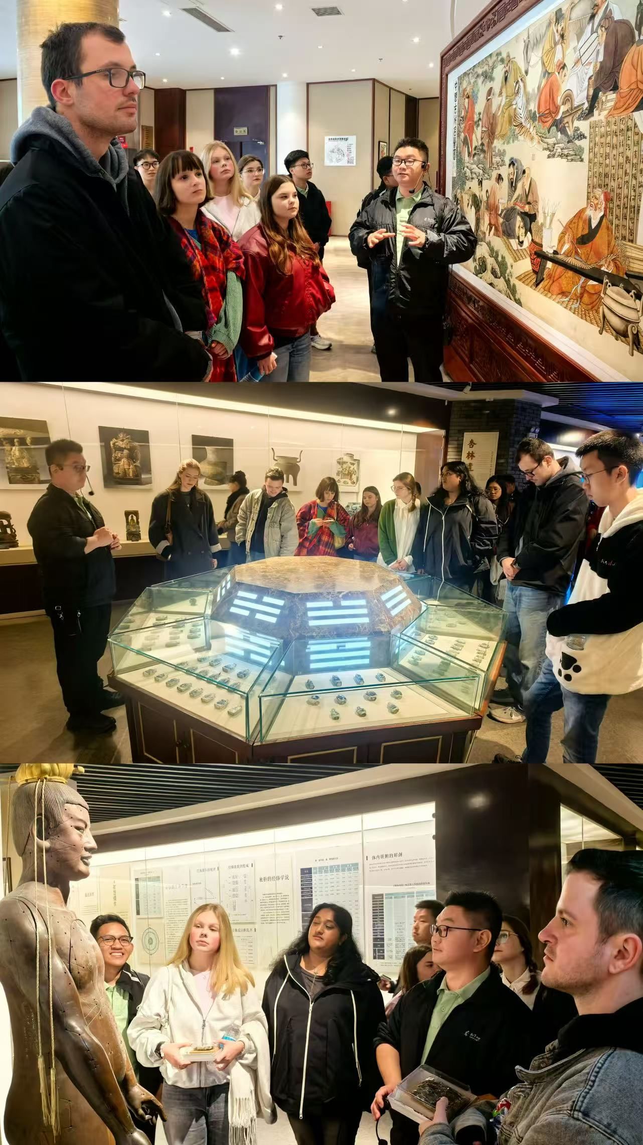 德国伯乐中文合唱团成员走进我校博物馆,从《中国古代名医图》到栩栩如生的药用植物标本,从精密的古代制药工具到现代化的中医药研究成果,德国青年们沉浸于中医药文化的博大精深。在一具标注着人体经络穴位的铜人前,代表团成员好奇地询问着“针灸”“经络”的奥秘,来自国际教育学院的留学生志愿者用生动的比喻,将抽象的中医理论化为易于理解的健康理念。