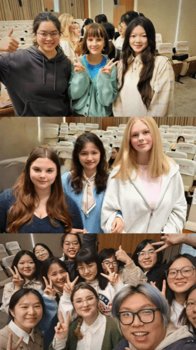歌声落定,情谊未歇。两国青年学子走下舞台,纷纷拿出手机,热情地邀请新认识的朋友一同自拍留念。清脆的快门声与阵阵欢声笑语交织,镜头定格下一张张洋溢着青春与友谊的笑脸。大家比划着手势努力地讨论着方才的演出,也交换着彼此的联系方式,约定未来线上再叙。音乐的共鸣在此刻已深化为心与心的贴近。
