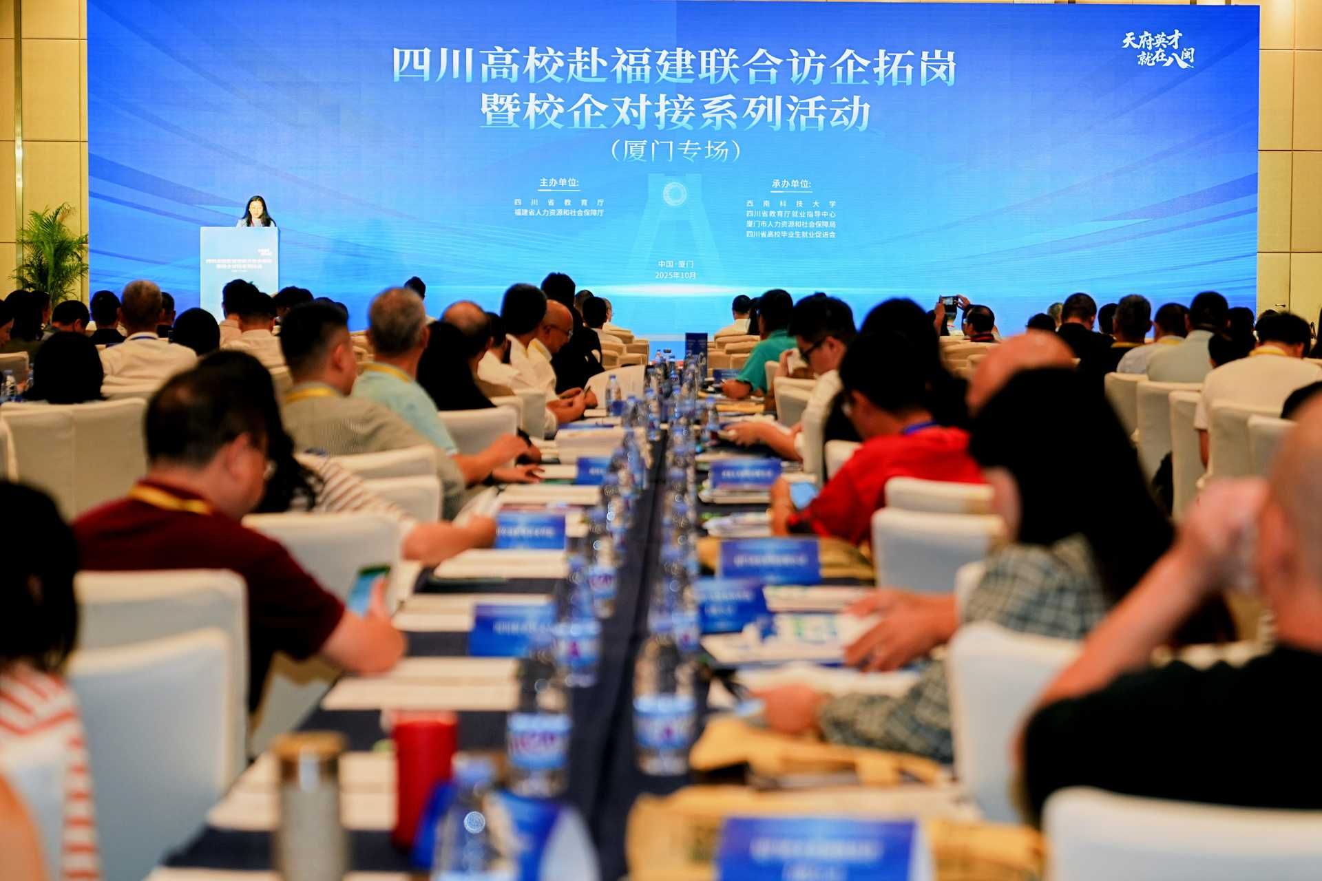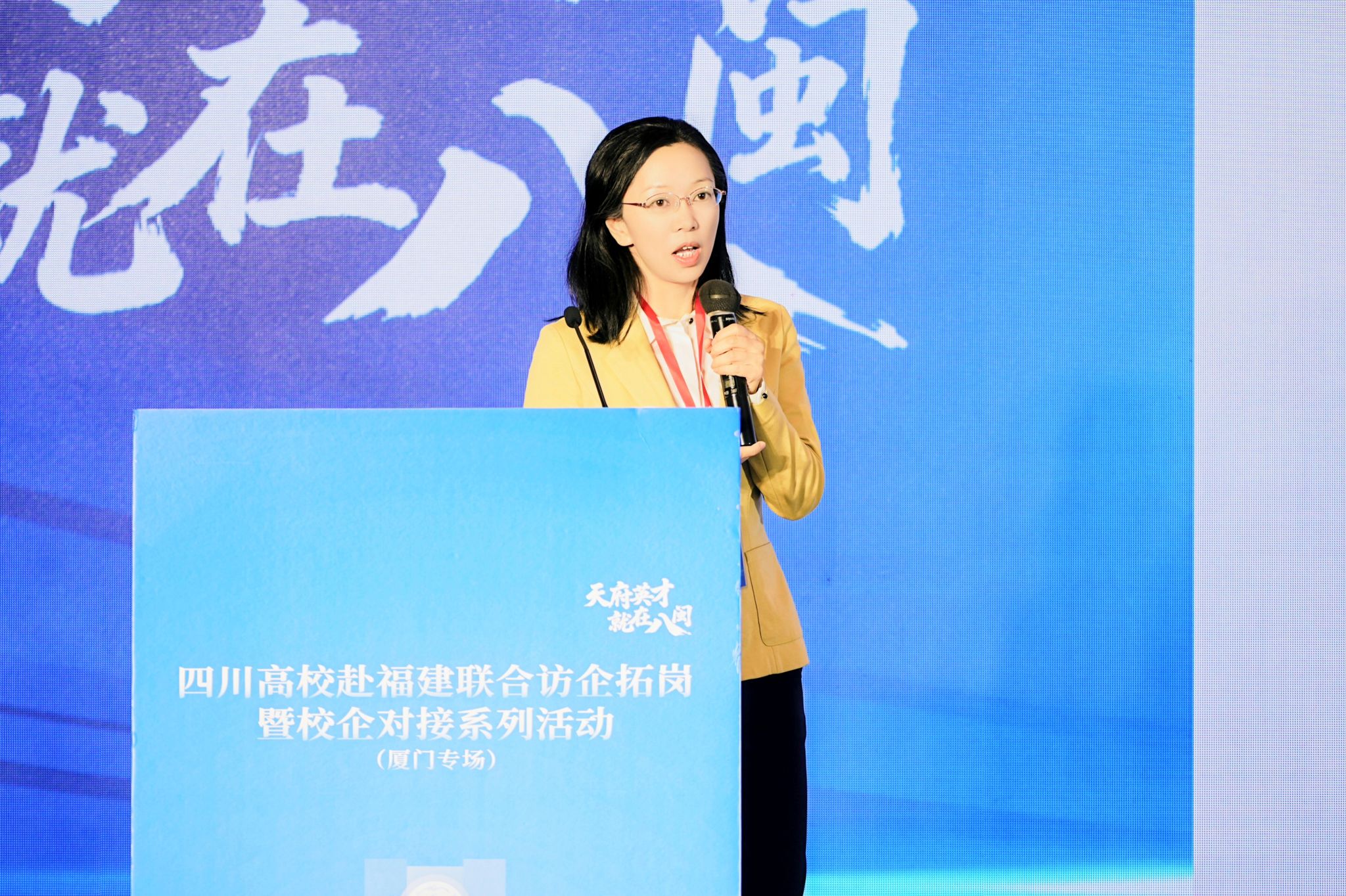 10月20日,厦门专场推介会举行,四川省40所高校及厦门市60余家企业代表到场参会。作为四川省3所推介高校之一,杨静在大会作学校推介发言,她系统介绍了我校厚重的办学历史、学科专业人才优势、国家级教学科研临床平台建设、人才培养成效、就业育人等情况,全面呈现了学校的教学、科研、医疗、人才、文化、服务社会等状况及合作愿景,希望此次来闽与福建医药健康领域相关单位深化合作,并邀请福建省用人单位来校选才,助力健康中国与中医药事业高质量发展,获得在场用人单位高度关注。