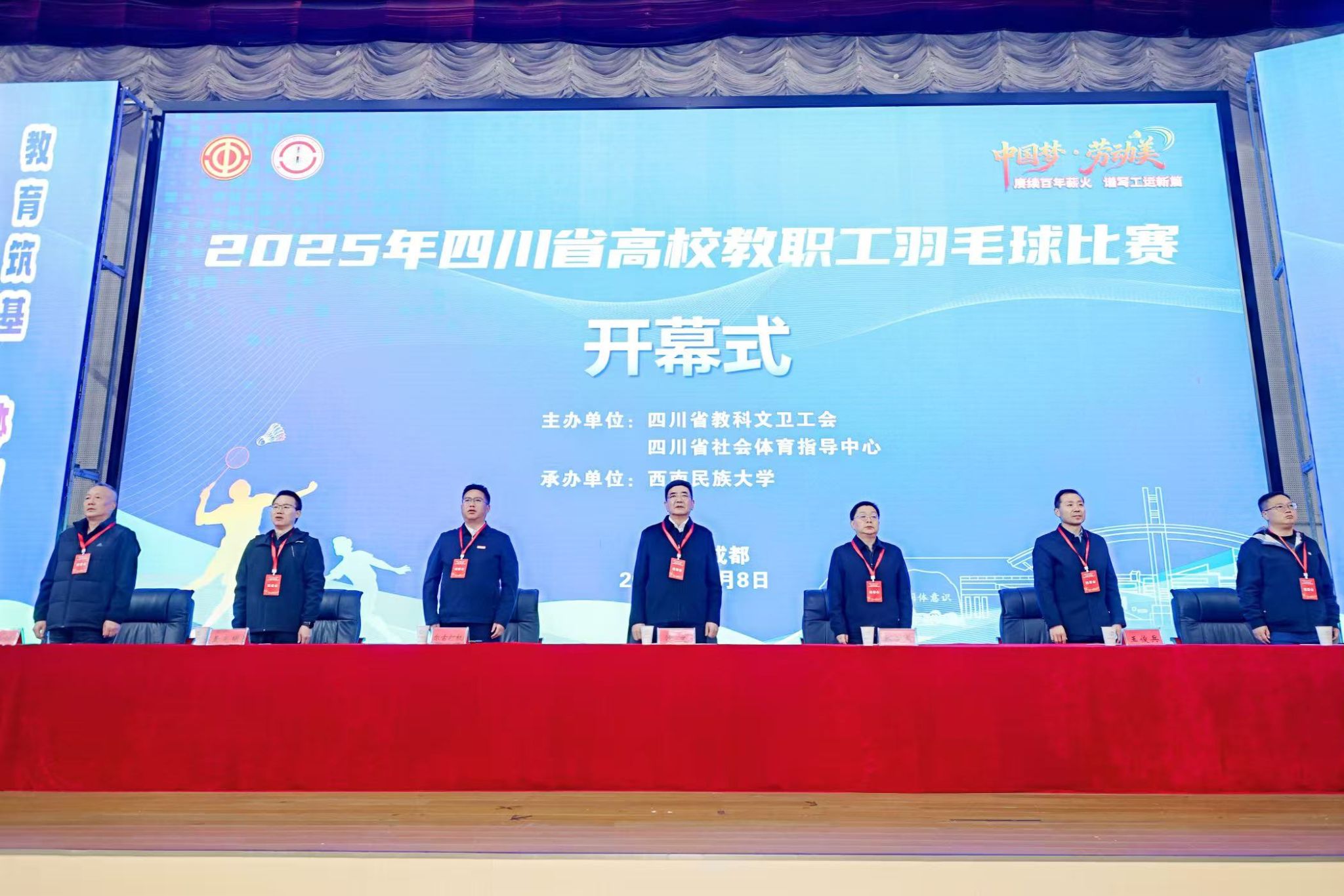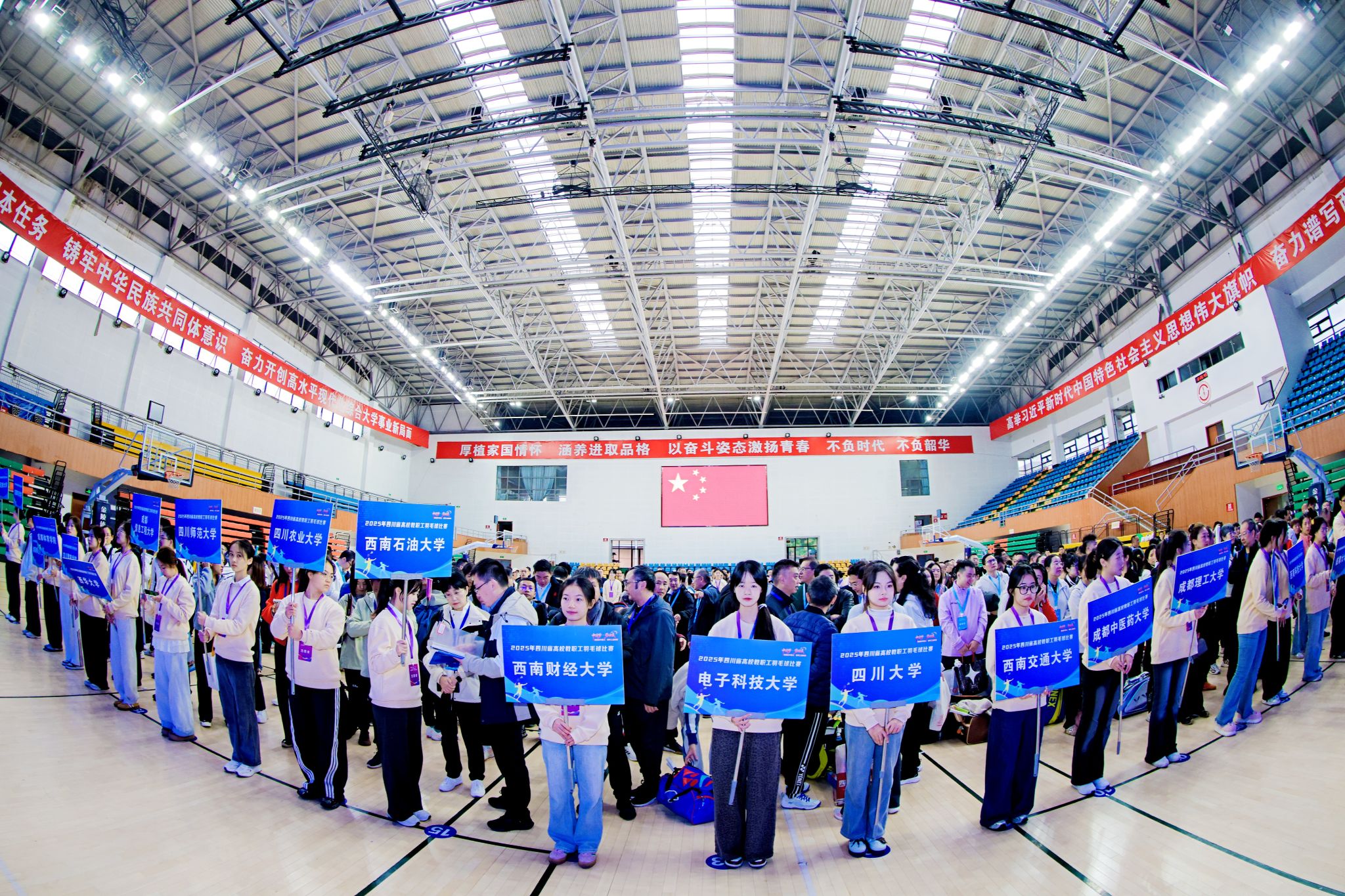 金风送爽,羽动蓉城。11月8日至9日,四川省高校教职工羽毛球比赛在西南民族大学航空港校区举行。省总工会党组副书记沙文出席开幕式并讲话。本次比赛由四川省教科文卫工会、四川省社会体育指导中心联合主办,西南民族大学承办,设青年组和中年组两个组别,涵盖男子双打、女子双打和混合双打6个组别竞赛项目,吸引四川大学、电子科技大学、西南交通大学等48所高校代表队420余名运动员踊跃参赛。