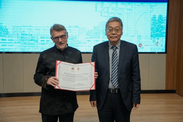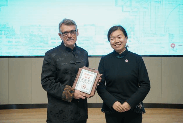 授牌建纽带,主旨报告破题中医药国际传播。 11月10日,曾芳在交流活动开幕式对 Guyatt 教授的到访表示热烈欢迎,并系统介绍了我校引智工作的阶段性成果以及循证医学与中医药交叉融合的研究进展。随后,曾芳为 Guyatt 教授颁发“杏林学者首席教授”聘任证书,余曙光为其颁发“海外引智专家”聘任证书。证书的授予,标志着双方在循证医学与中医药交叉合作领域正式建立长期稳定的学术纽带。
