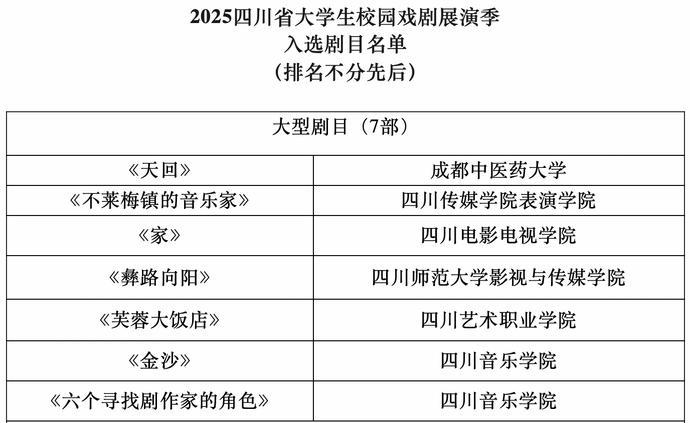 11月21日,由四川省文学艺术界联合会、四川省教育厅、四川省文化和旅游厅联合主办,四川省戏剧家协会承办的2025四川省大学生校园戏剧展演季正式拉开帷幕。我校作为唯一非表演类院校,其原创话剧《天回》成功入选大型剧目展演项目,并于开幕式当晚在成都艺术职业大学精彩上演。