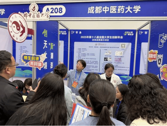 年会现场,我校展区成为人气最旺的展位之一。由《润肺清源-新型哮喘管理与国产雾化系列的开创者》《肠舒脑悦—一体化康脑健脑治疗仪开拓者》等项目组成的展示区吸引了大量参会师生驻足。展台前咨询者络绎不绝,项目团队研发的中医智能治疗仪体验区更是排起长龙。来自南京大学、浙江大学等多所高校的师生对我校项目表现出浓厚兴趣,不少参展代表表示“看到了中医药创新的无限可能”。