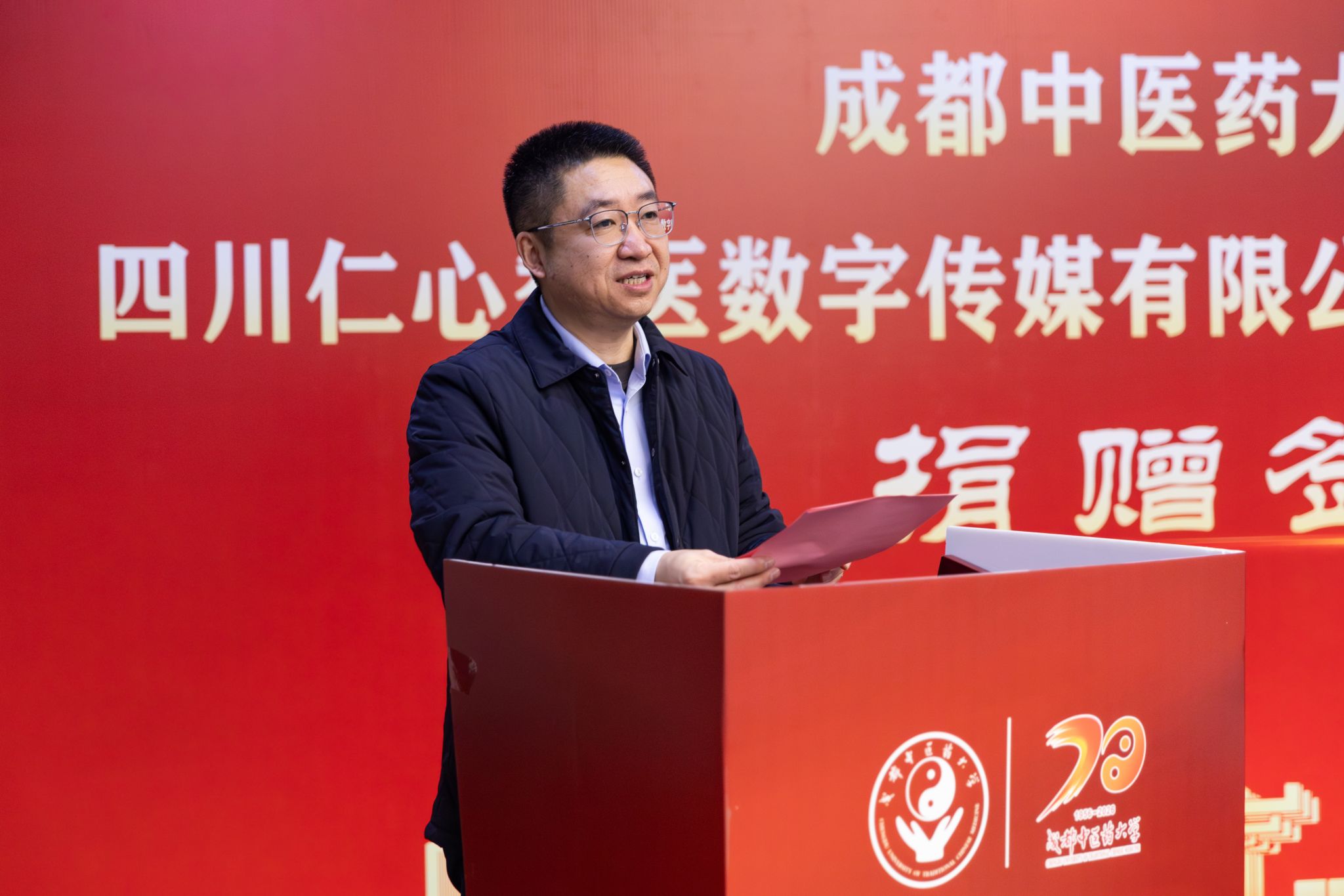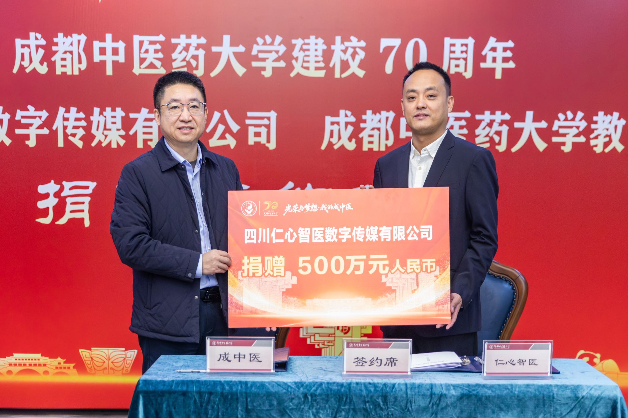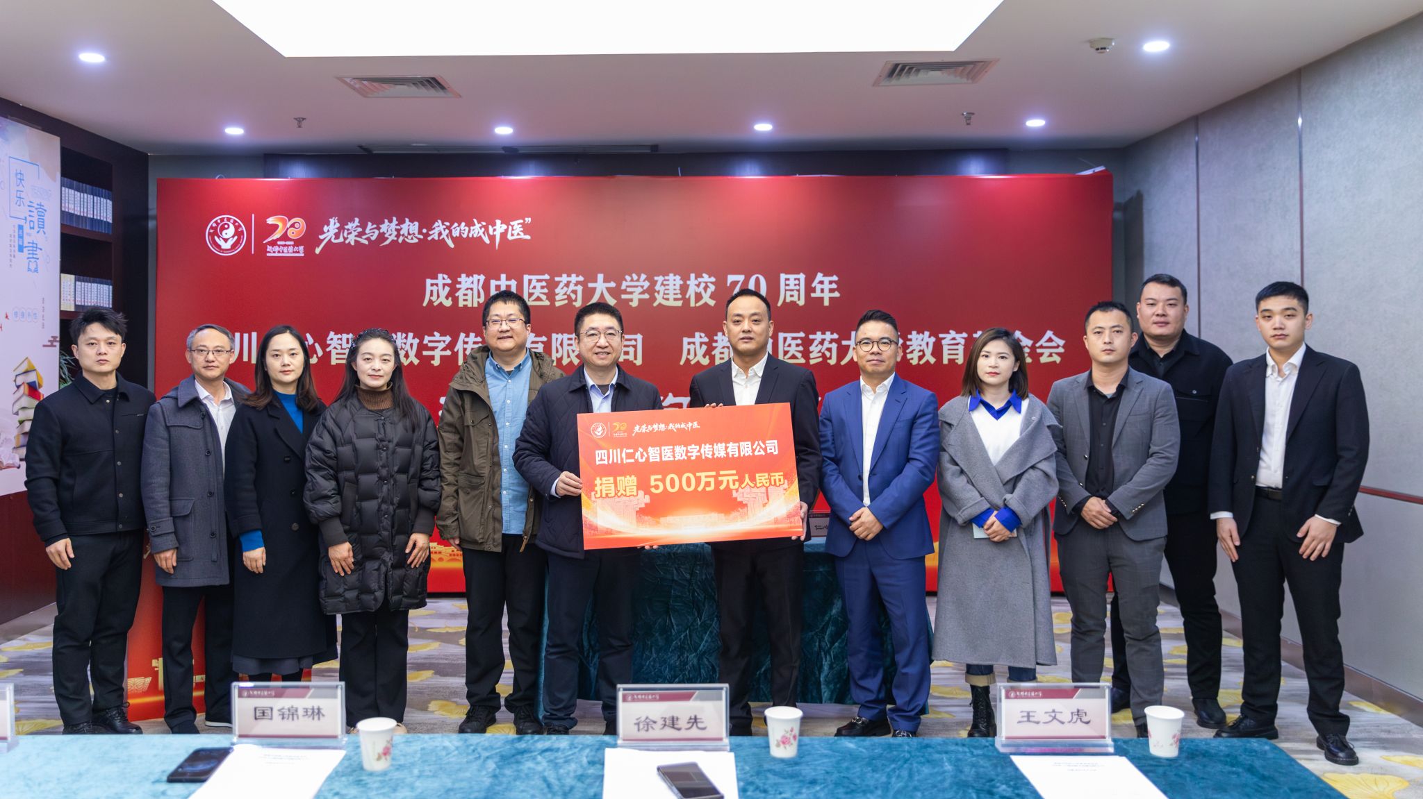 12月5日,在成都中医药大学70周年校庆筹备关键阶段,四川仁心智医数字传媒有限公司捐赠签约仪式在温江校区举行。学校副校长国锦琳、企业负责人徐建先一行及相关职能部门负责人出席捐赠仪式,仪式由对外合作处处长佟枫主持。