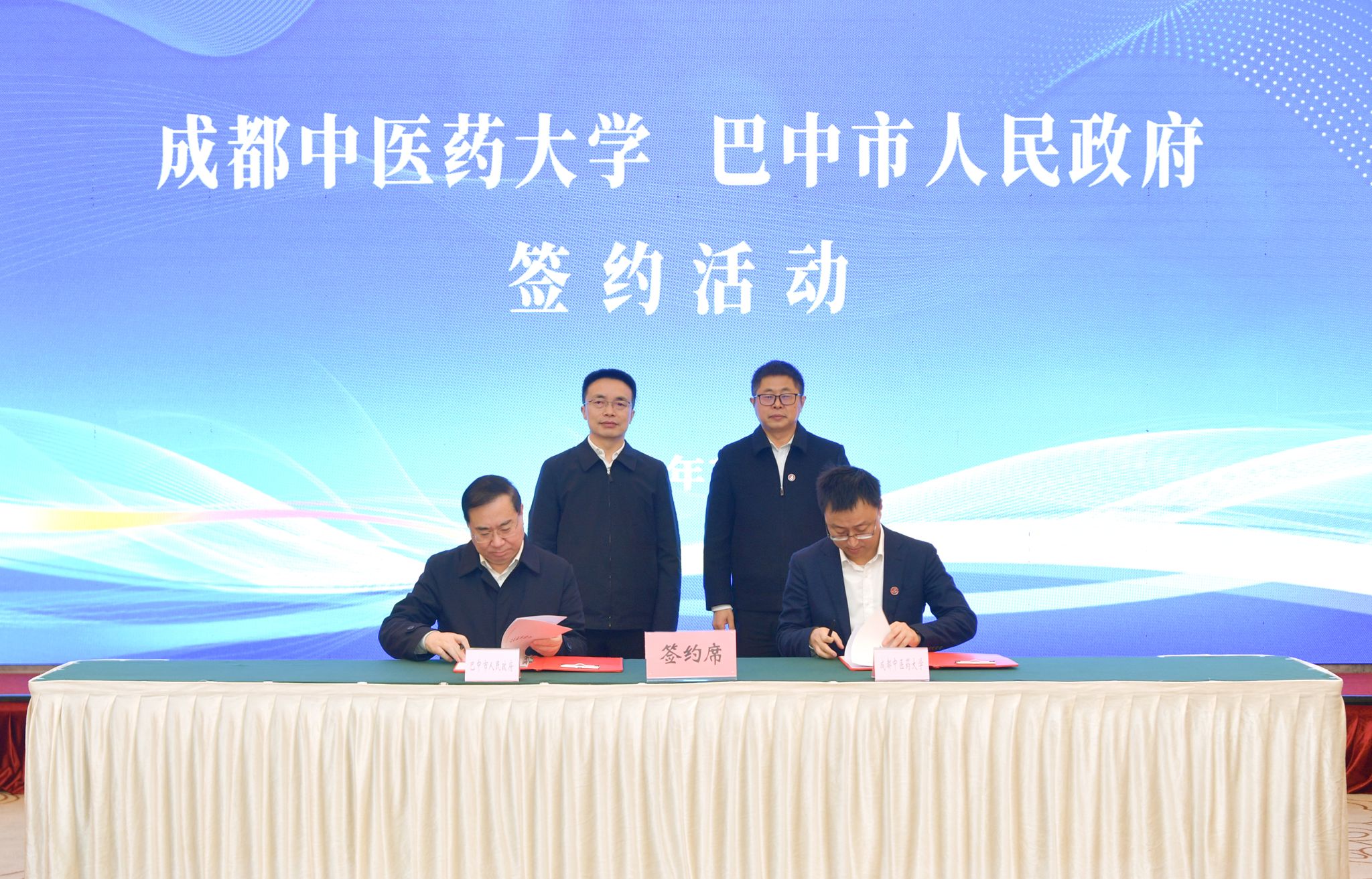 在张泽钧、鲜荣生的共同见证下,双方正式签署《成都中医药大学 巴中市人民政府合作框架协议》。