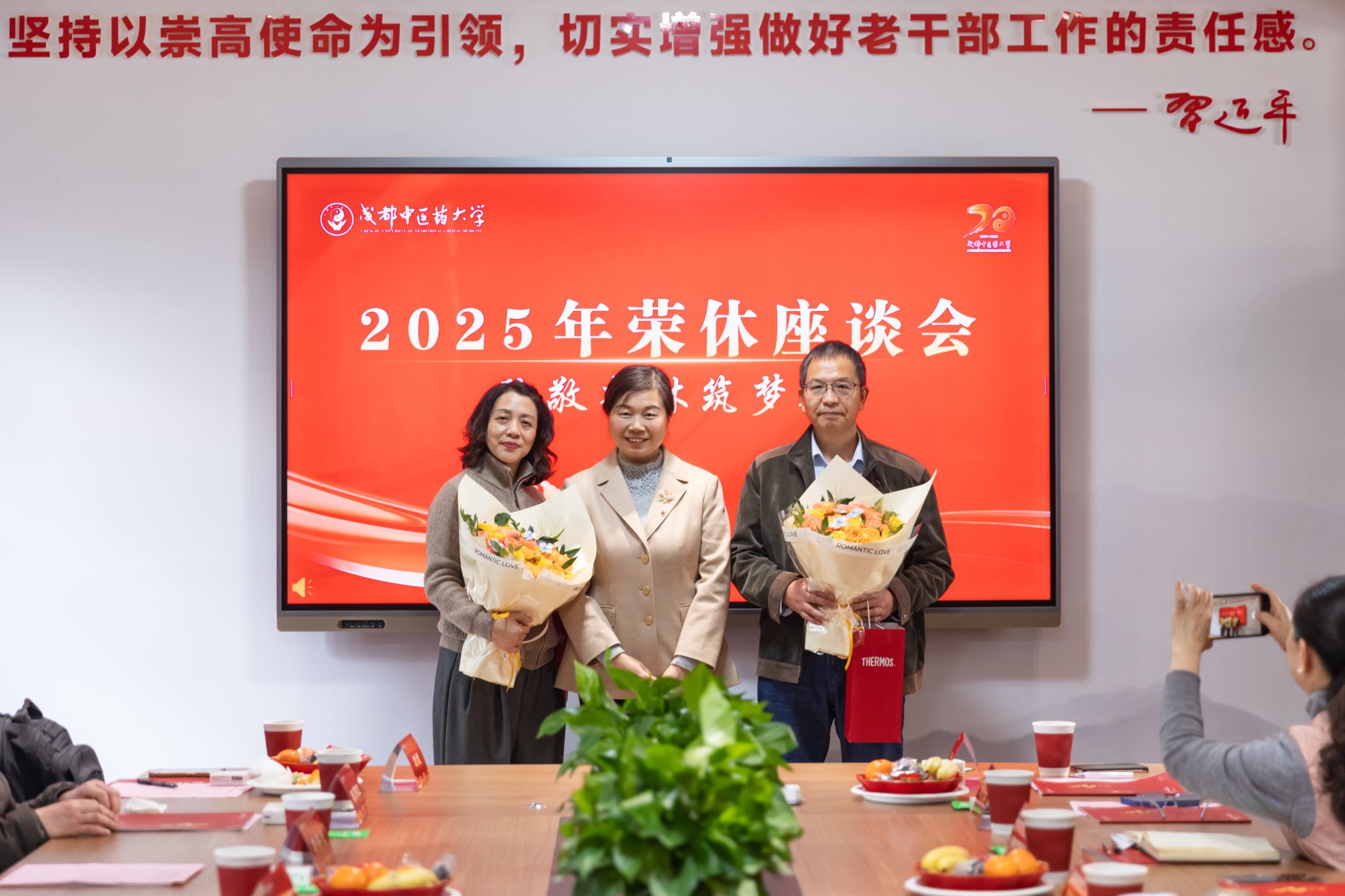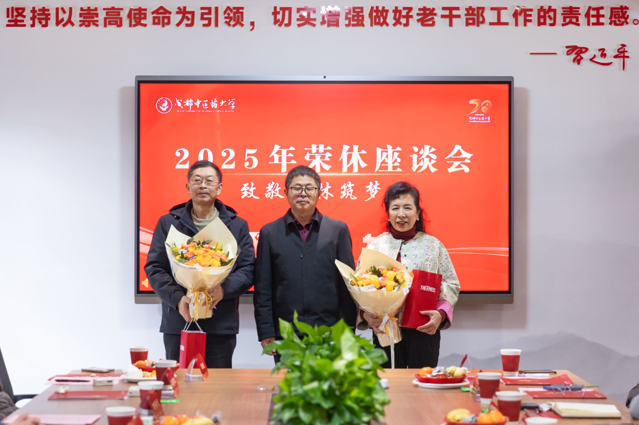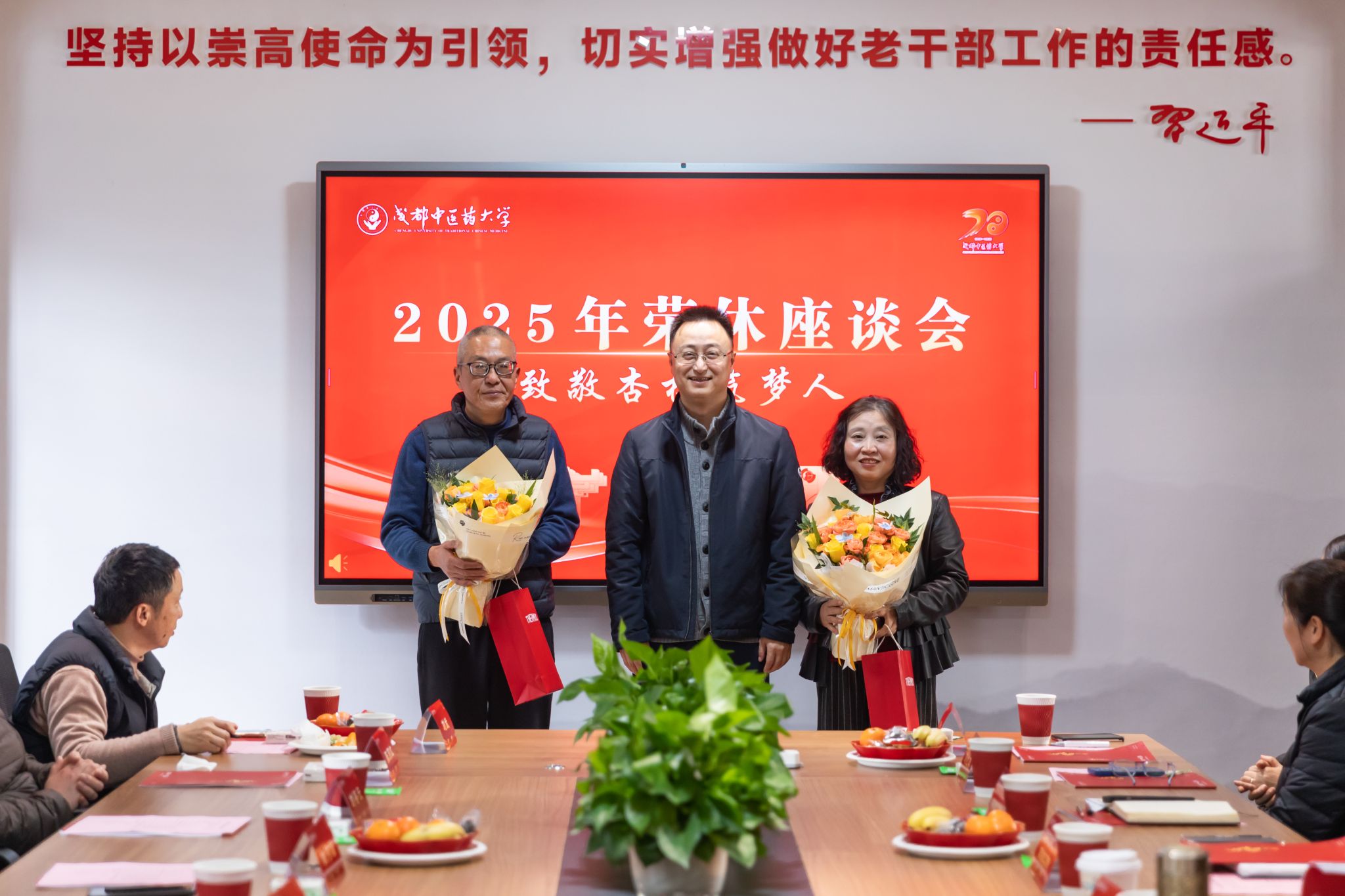 张泽钧向荣休教职工致以诚挚谢意。他指出,成都中医药大学近七十年建设,离不开一代代成中医人的默默坚守。学校的发展和事业平台托举教职工成为最好的自己,教职工的辛勤付出与无私奉献更成就了学校今日的发展。谈及未来,他强调,成中医人的奋斗精神必将代代相传,校领导班子将带领全体教职工聚焦高质量发展,凝心聚力推进学校建设。他祝愿老师们退休生活红火顺遂、舒心安康。