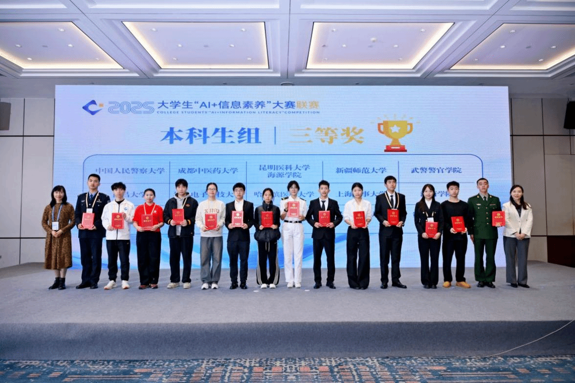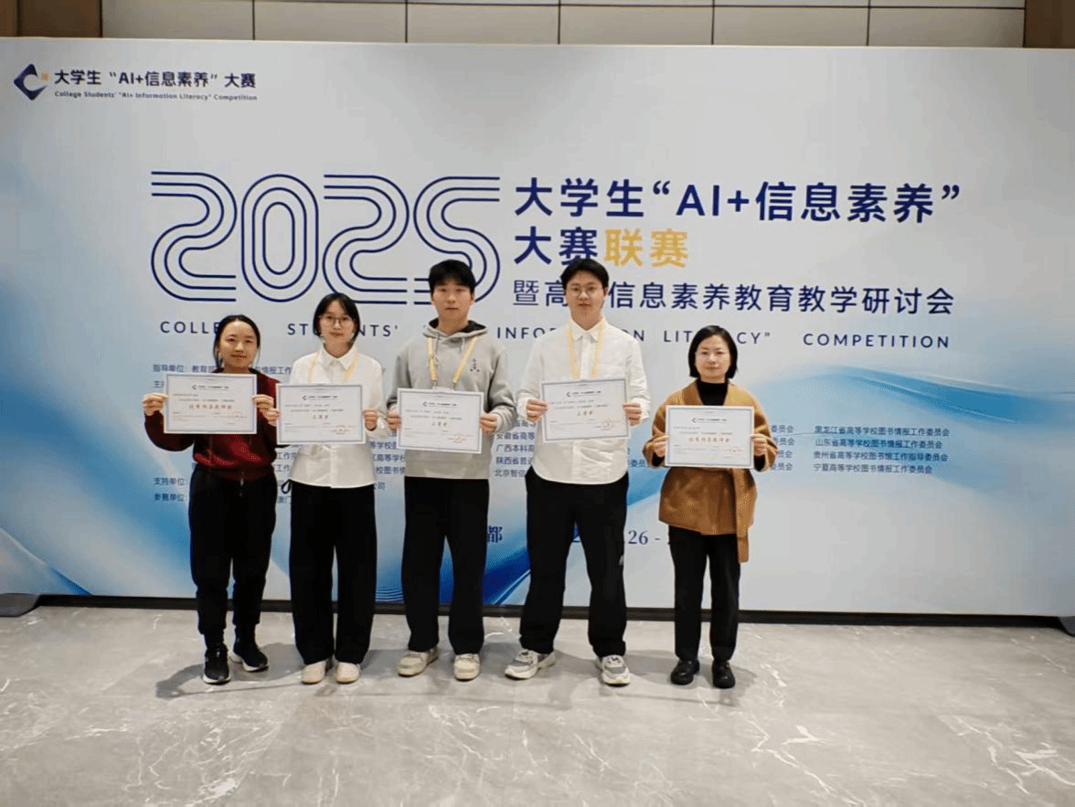 近日,2025年大学生“AI+信息素养”大赛全国联赛在成都圆满落幕。由我校图书馆组织指导的本科生团队(胡潇文、李映萱、黄锧),历经多轮激烈竞争,最终荣获全国联赛本科生组三等奖,图书馆张肖瑾、张洁两位老师获评优秀指导教师。