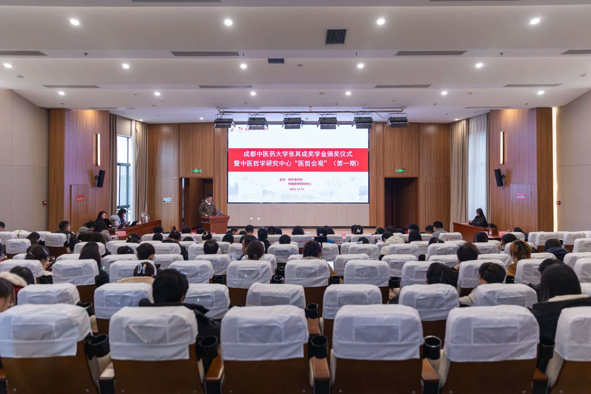 12月15日,张其成奖学金颁奖仪式暨全国中医药院校首个“中医哲学研究中心”“医哲会观”(第一期)举办。本次活动由成都中医药大学教育基金会、成都中医药大学中医哲学研究中心联合主办。学校党委副书记、中医哲学研究中心主任杨静致辞,中心学术委员会主任委员、著名国学专家、当代易学家、中医文化学家张其成作主旨报告。