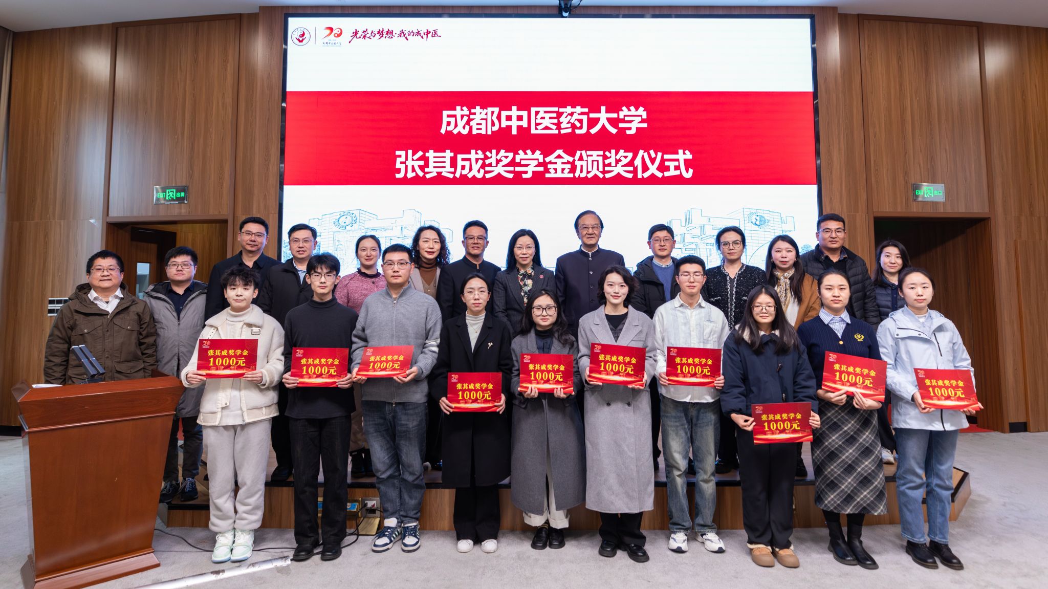 活动同期举行了“张其成奖学金”颁奖仪式,学校基础医学院、针灸推拿学院、马克思主义学院、国学院的十名学生获奖。张其成教授、基金捐赠代表成都润馨堂药业有限公司董事长徐亮为获奖学生颁奖,鼓励青年学子将中医智慧植根学习与实践,自觉传承中医哲学基因与中医药文化精神,将所学转化为服务人民健康的实践力量,推动中医药文化走向世界。颁奖仪式由对外合作处处长、成都中医药大学教育基金会副理事长佟枫主持。