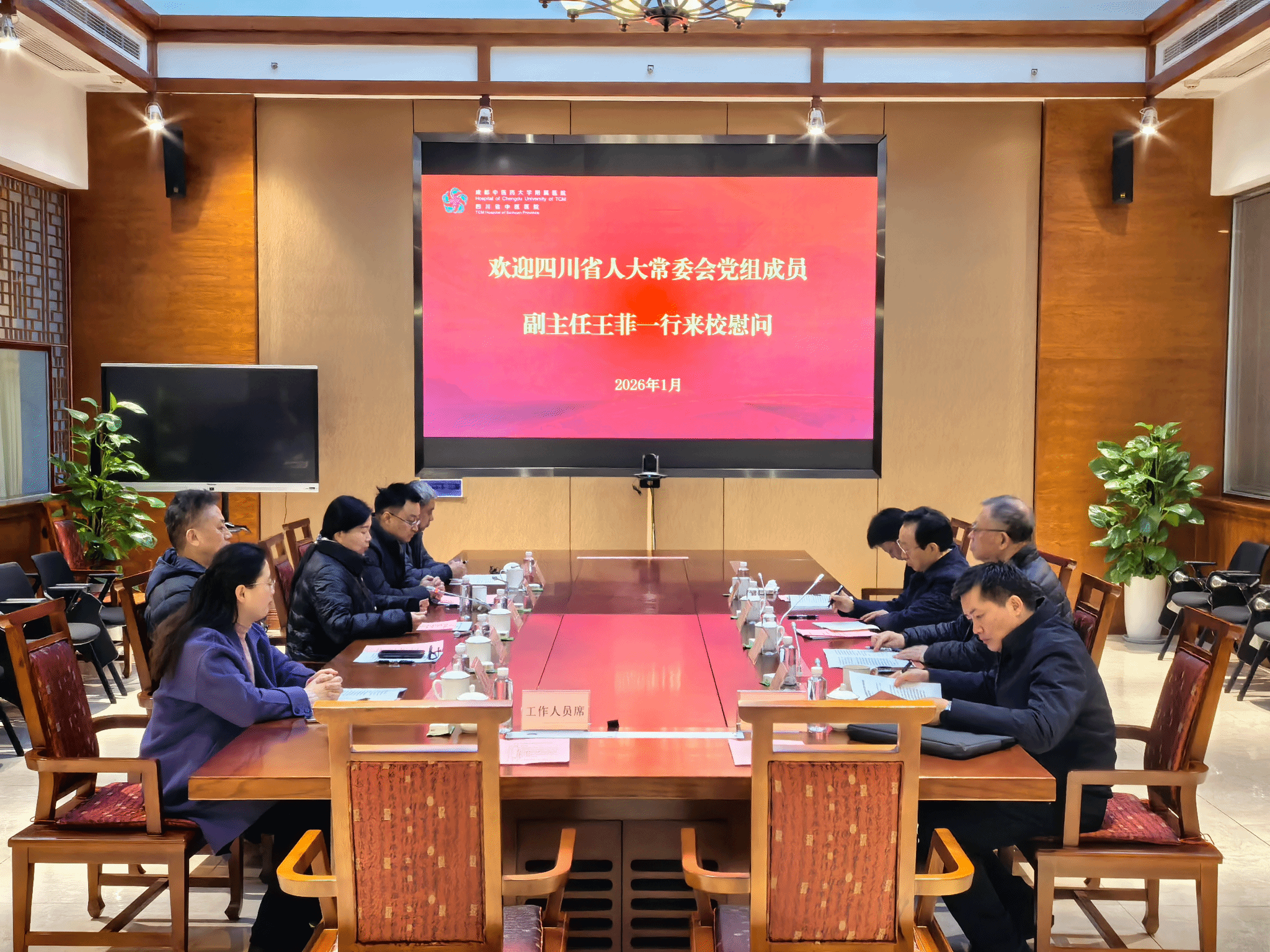 1月29日,四川省人大常委会党组成员、副主任王菲一行莅临我校慰问高层次人才、校长曾芳教授。省人大常委会委员、社会委主任委员房方等陪同慰问。学校党委常委、副校长、附属医院党委书记郑川,附属医院主持工作副院长樊效鸿及相关部门负责人出席慰问座谈会。