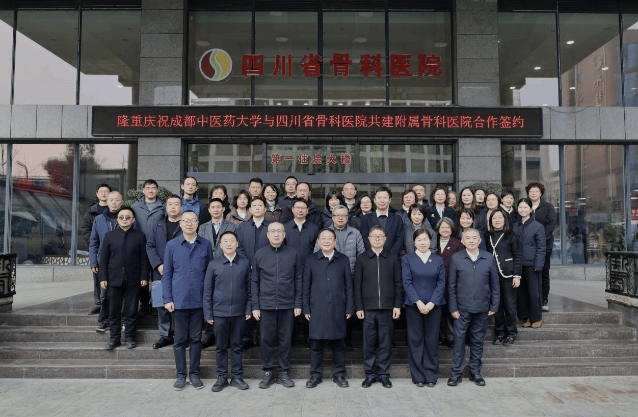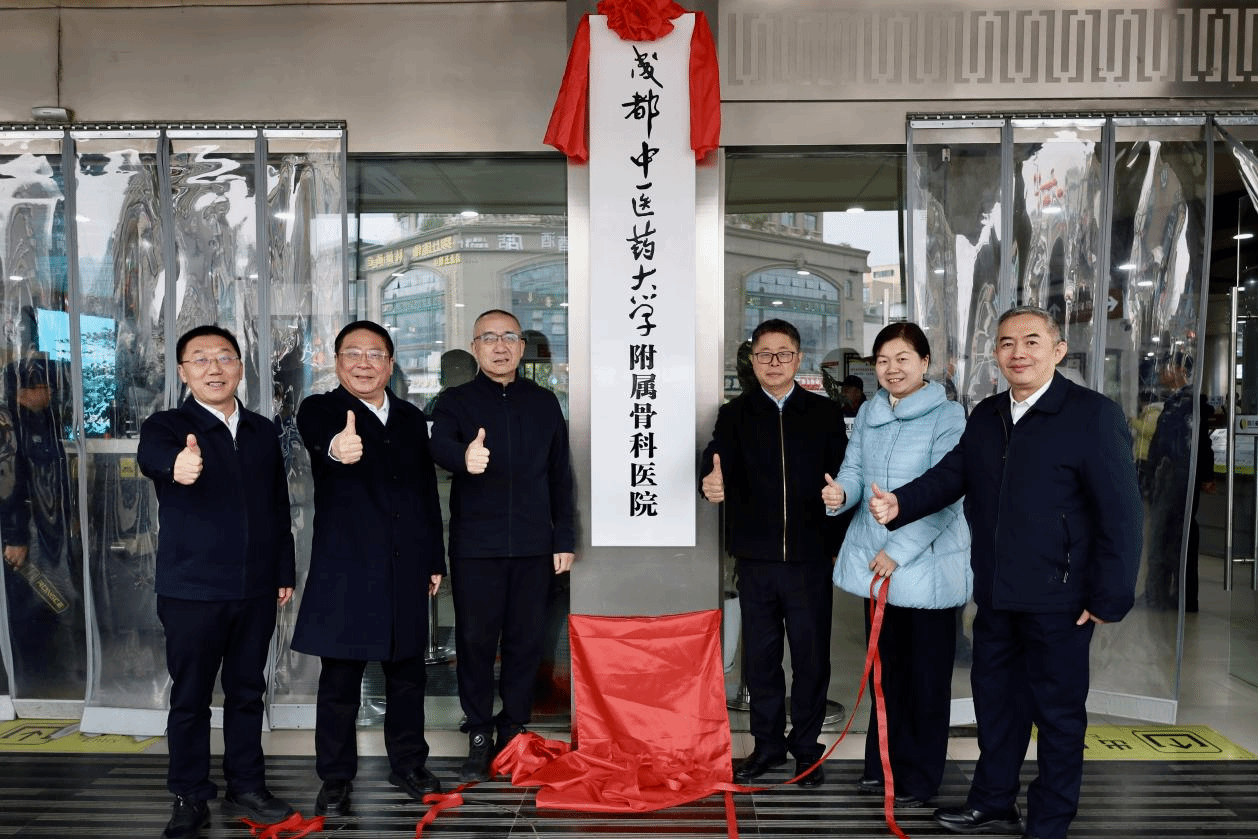 签约仪式后,与会领导共同为“成都中医药大学附属骨科医院”揭牌,标志着成都中医药大学附属骨科医院正式扬帆启航。此次校院共建附属骨科医院是推进国家中医药综合改革示范区建设与四川省中医药强省建设部署的主动作为与生动实践,将以打造国家级重点专科群、高层次人才孵化基地与中医药创新转化高地为目标,聚焦医教协同融合发展,为四川中医药事业高质量发展筑牢根基,为健康中国建设贡献力量。