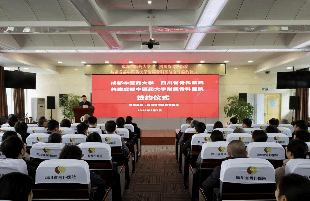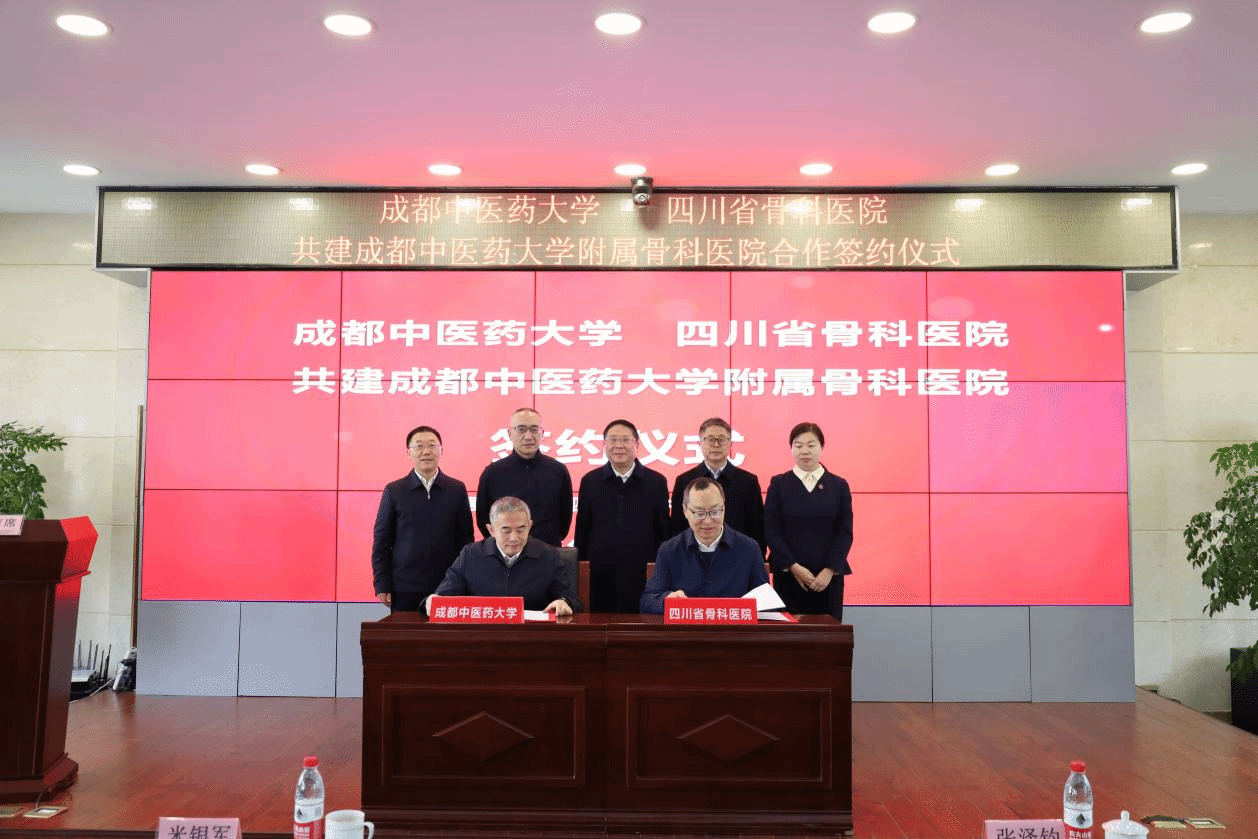2月3日,成都中医药大学、四川省骨科医院共建成都中医药大学附属骨科医院合作签约暨揭牌仪式在四川省骨科医院举行。四川省中医药管理局党组成员、副局长米银军;学校党委书记张泽钧,党委副书记、校长曾芳,党委常委、副校长冯全生;四川省骨科医院党委书记沈海,党委副书记、院长李道丕等领导出席仪式。仪式由李道丕主持。