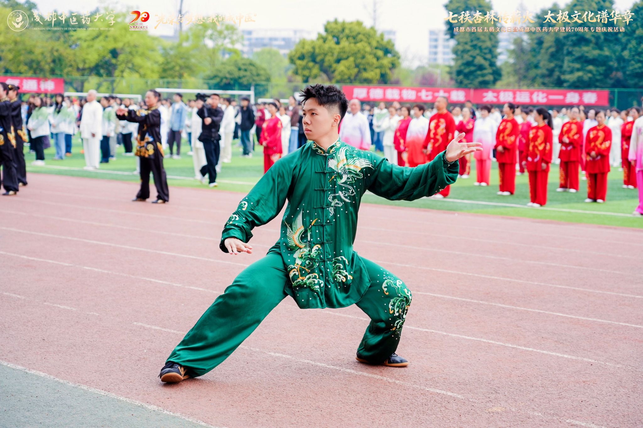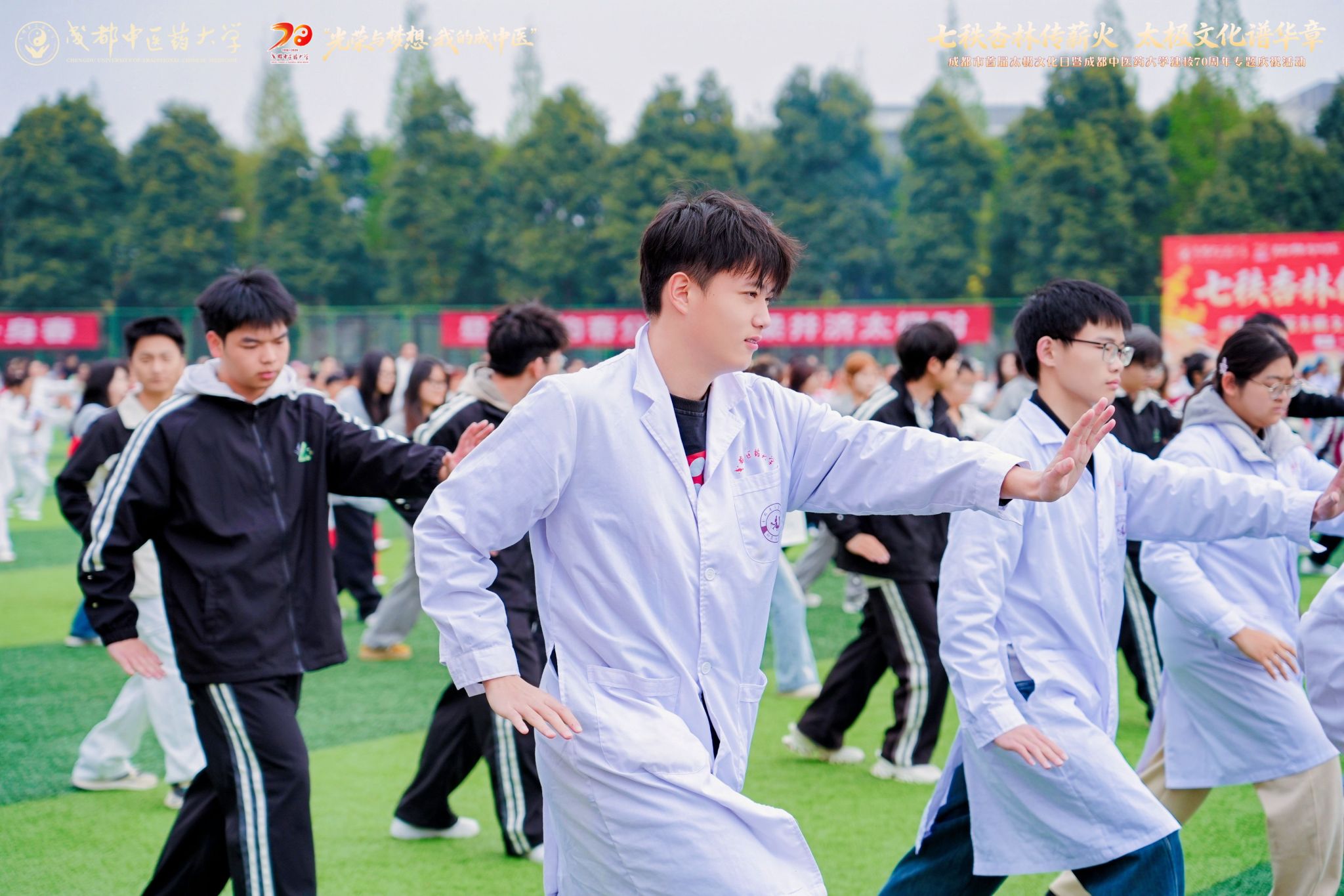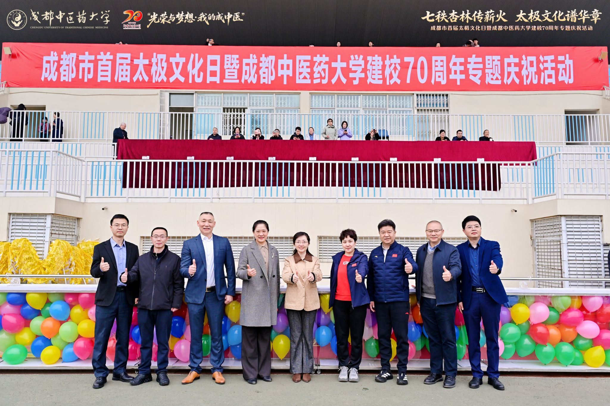 3月21日,为深入贯彻落实“健康中国”战略和全民健身国家战略,赓续中华优秀传统文化的博大根脉,我校举办首届成都“太极文化日”暨成都中医药大学建校70周年专题庆祝活动。