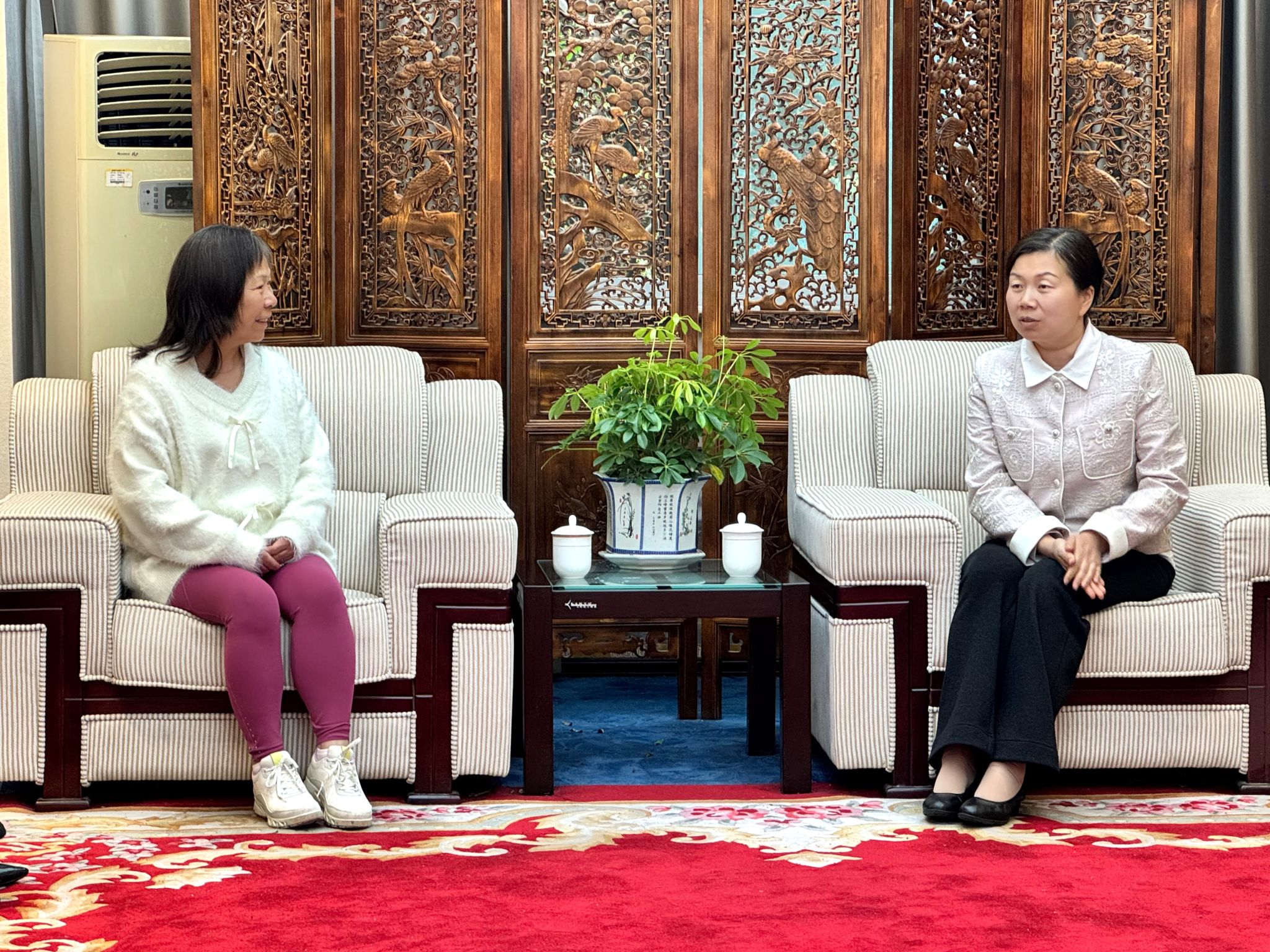 曾芳对程霞一行来访表示热烈欢迎,高度赞扬了程霞博士作为我校杰出校友在北美地区推动中医药事业发展方面取得的成就。曾芳向程霞一行简要介绍了我校“十四五”时期办学发展情况和国际合作交流成果,并热情邀请海外校友在学校建校70周年之际返校与会,共话友情、共谋发展。