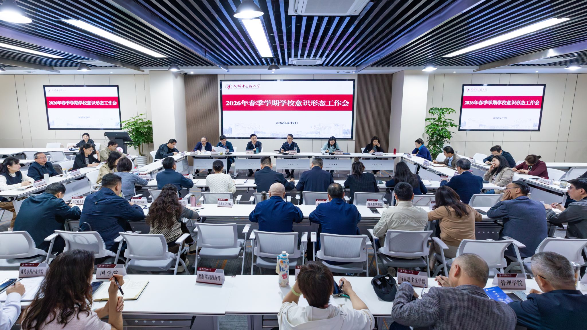 为进一步扎实筑牢意识形态防线,压紧压实意识形态工作责任,落实好上级关于意识形态工作的部署要求,4月9日上午,学校党委召开2026年春季学期意识形态工作会,对意识形态工作相关情况进行通报,并研究部署下一步工作。学校党委书记张泽钧出席会议并讲话,党委副书记杨静、党委常委、副校长郑川出席会议。会议由杨静主持。