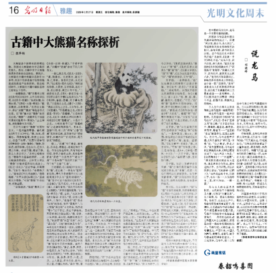 成都中医药大学张泽钧教授于2026年2月27日在《光明日报》发表“古籍中大熊猫名称探析”的研究成果。