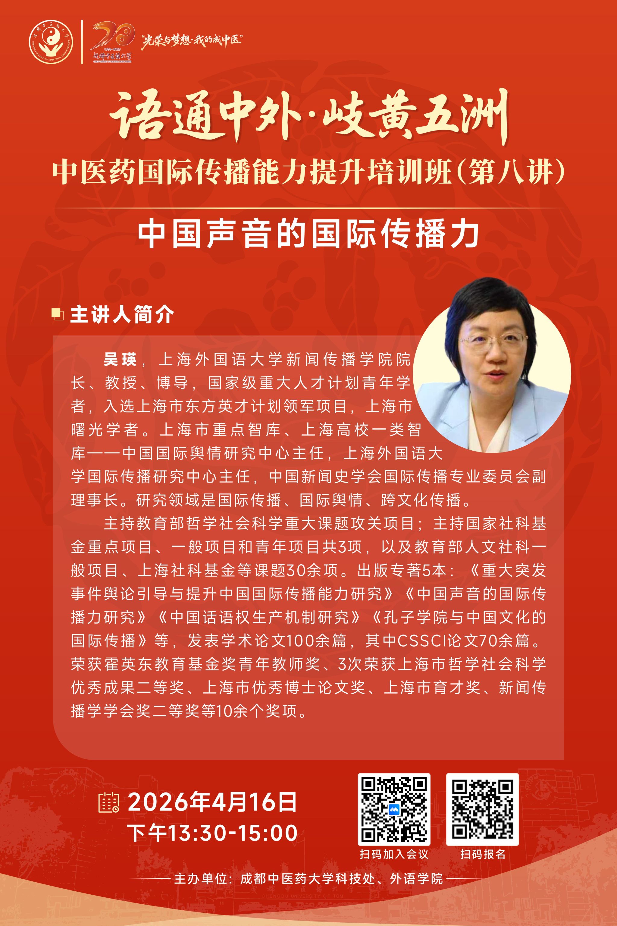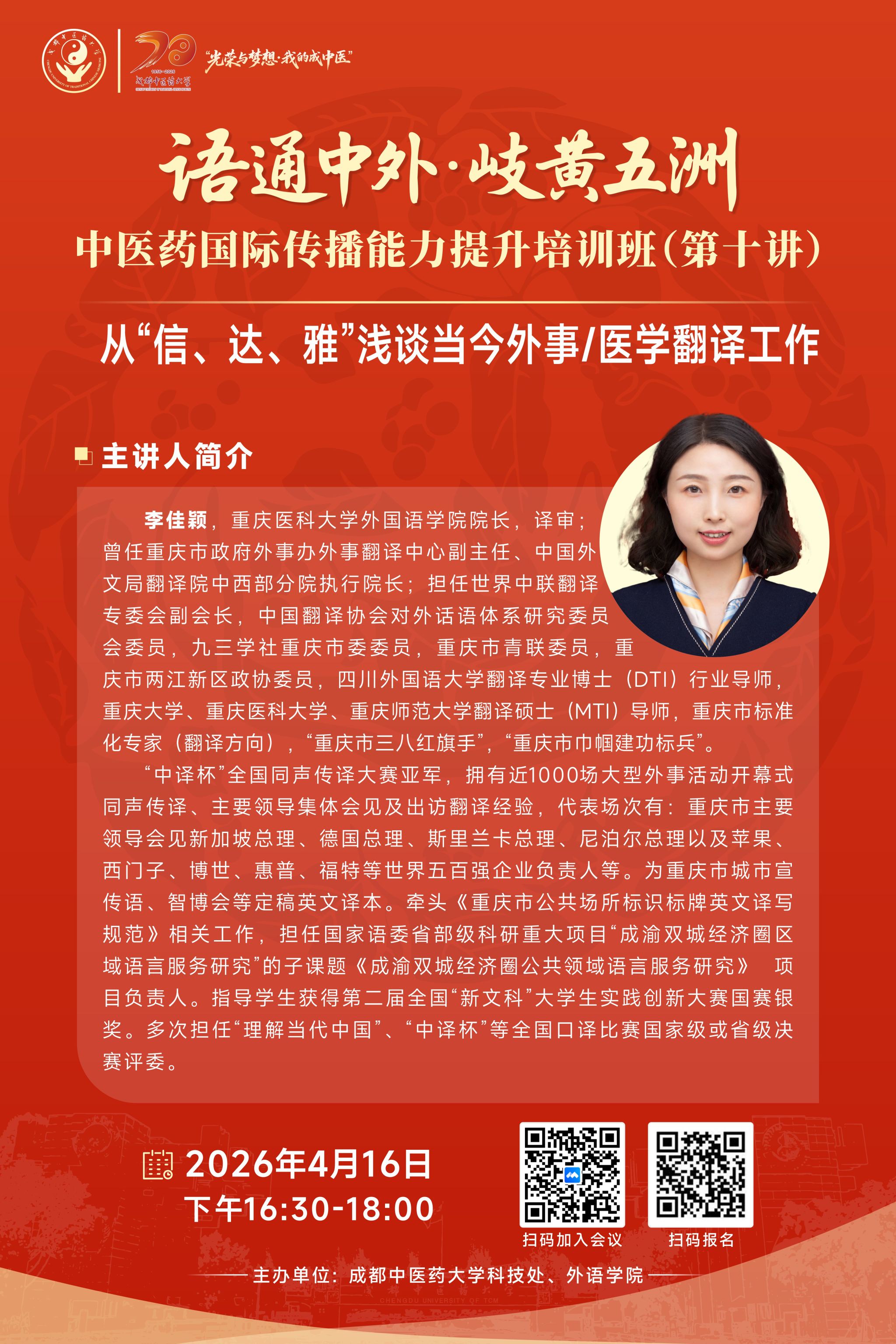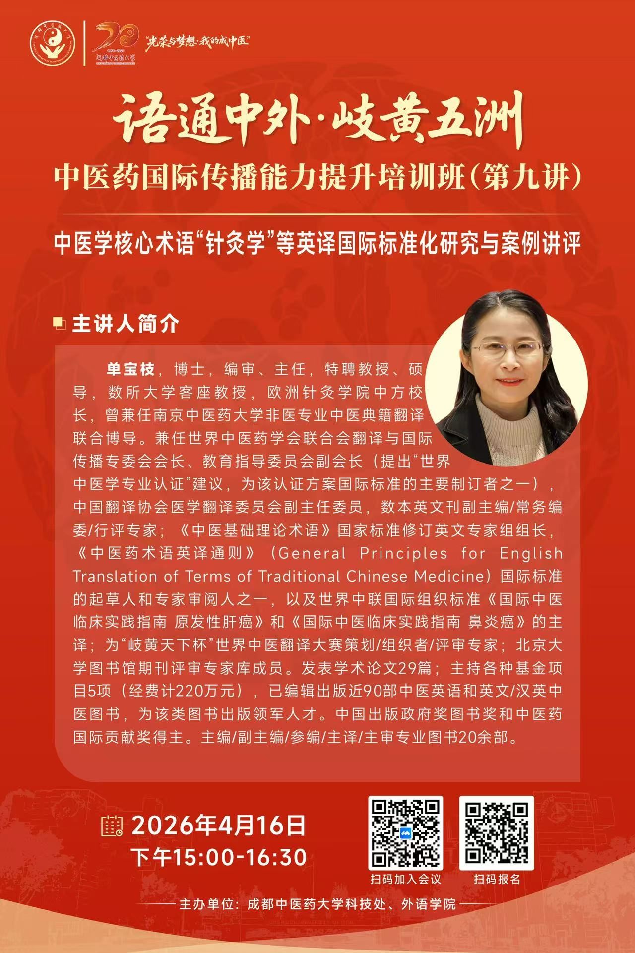 题 目:中医学核心术语“针灸学”等英译国际标准化研究与案例讲评