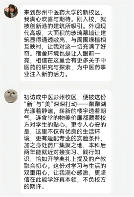 2025级硕士研究生新生代表邓菲和本科生新生代表李欣怡分别做发言。邓同学认为当下中医药迎来政策机遇,学院搭建了理论与产业的桥梁。表示将立志成为通晓传统与现代技术的复合型人才、以临床价值为导向的实践者、推动中药国际化的探索者,愿与同学携手助力产业进步。