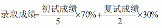 录取成绩(四舍五入后保留两位小数)=初试成绩折合百分制×70%+复试总成绩折合百分制×30%,即: