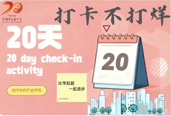 当成都中医药大学70周年校庆的倒计时钟声敲响,“光荣与梦想·我的成中医”的校庆主题在校园里激荡回响,正值学风建设月开展之际,为厚植中医药文化底蕴,涵养勤学笃实的优良学风,成都中医药大学现代中药产业学院以“青春逐药·学风正好”为主题,于11月正式启动学风建设月系列活动。本次活动涵盖云端书话、学习打卡、经验分享、笔记大赛等多元形式,覆盖大一至大三全体学生,旨在通过沉浸式、互动性活动,引导学子在交流中提升学习能力,在实践中筑牢专业根基。