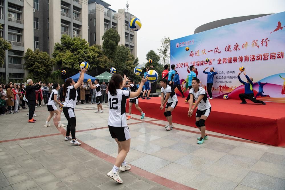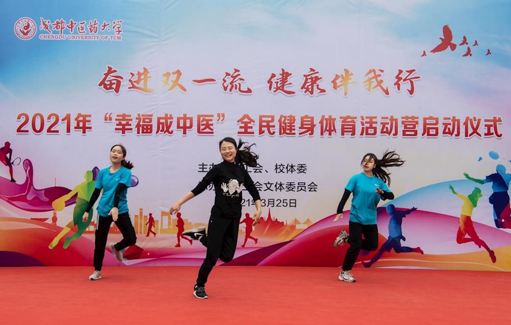 三月的校园,柳绿花红,生机勃勃,一场欢快的运动秀更增添了幸福成中医的味道。3月25日中午,2021年“幸福成中医”全民健身体育活动营在李斯炽广场正式启动。此次活动以“奋进双一流,健康伴我行”为主题,是学校在开展党史学习教育中积极落实为群众办实事、推进2021年学校十大民生实事的重要举措。校领导刘毅、余曙光、沈涛,校工会委员、校体委委员、各职能部门负责人,各教工文体俱乐部成员,各分工会负责人、职工代表及专项运动学生助理参加。启动仪式由校体委秘书长、体育学院院长谢卫主持。