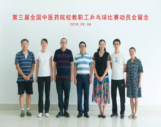 2018年9月27日至30日,由全国中医药高等教育学会主办、长春中医药大学承办的第三届全国中医药院校教职工乒乓球比赛在长春举行。赛前学校党委副书记、校工会主席、校体委主任沈涛出席动员会,亲切看望备赛选手,鼓励大家积极备战、赛出风格、展示成中医院的精神风貌。我校工会常务副主席宋岚等一行6人代表学校参加了比赛。