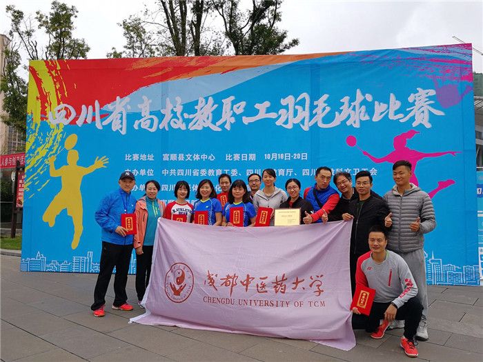 10月18至20日,由中共四川省委教育工委、四川省教育厅、四川省教科文卫工会主办的四川省高校教职工羽毛球比赛在富顺县文体中心举行。来自全省42所高校524名运动员参加比赛。通过两天一夜紧张激烈的角逐,我校参赛队员聂上伟、丁南杰获B组男子双打第一名;潘珂、吴颖敏获B组女子双打第二名;魏华、朱俊峰获A组男子双打第二名;倪燕、郭璟获A组女子双打第三名;陈远莉进B组女子单打八强。学校团体总分排名第四,仅位居西南交通大学、四川大学、四川师范大学之后,取得历史最好成绩。 此次比赛得到学校领导的关心和校工会的大力支持,学校海燕羽毛球俱乐部积极组织备战参赛,队员们刻苦训练,奋力拼搏,赛出了成中医的水平,彰显出成中医团结协作的精神。当B组双打的决赛场上,同时出现两支“成中医”的队伍;当兄弟院校参赛队员开始密切关注 “成中医”的名字;当“成中医,加油!”的呐喊声响彻比赛场馆时,作为成中医人,队员们无比自豪。这种自豪感将汇入“成中医”的文化血脉,让每一位“成中医”人为之努力和付出,为学校争得更多荣誉。