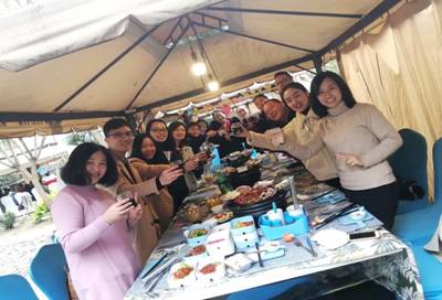 2019年3月15日,我们工会小组共30位工会成员在三圣乡举行了愉快的工会活动。活动当天中午,小组成员进行了自助烧烤,老师们都很高兴可以自己动手制作美食分享给同事,大家边吃边聊,从工作聊到生活的趣事,烧烤桌的上空传出一片欢乐的笑声,场面好不热闹!在长达两个小时的烧烤时光之后,大家又自发的参加了台球、唱歌、羽毛球、棋牌等活动。