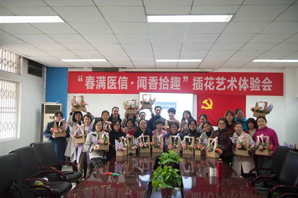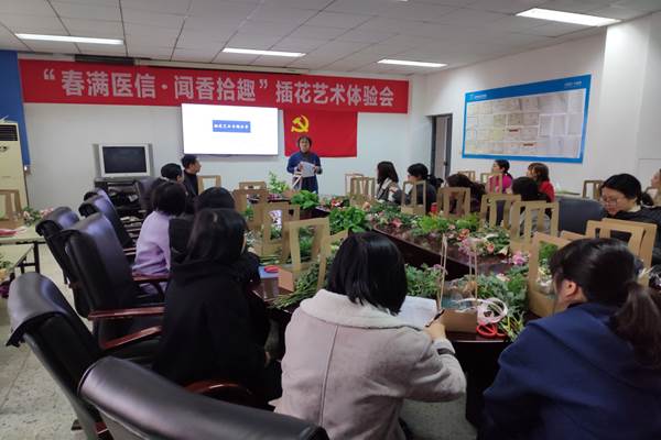 为丰富学院女职工的文化生活,提高审美情趣和人文情怀,在校工会、院党委的大力支持下,3月15日上午10点,由院工会精心组织的“春满医信,闻香拾趣”插花艺术体验会在温江学院102会议室举行。参加此次活动的有学院女职工22人,校工会副主席宋岚亲临现场指导,活动由学院党委书记孔静主持。