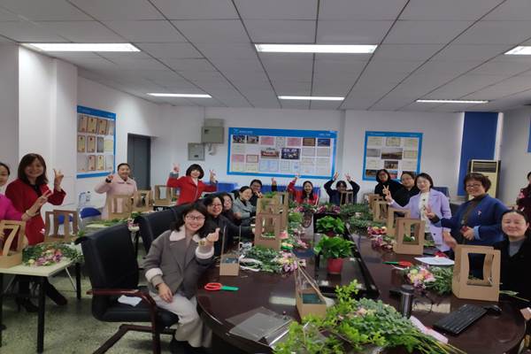 香气怡人的氛围让老师们兴致盎然,大家手捧鲜花提篮,合影留念。本次插花体验活动,不仅传递了节日的祝福,更增加了交流、沟通的渠道,老师们收获了美丽的心情,将带着这份美好和温暖,全身心地投入到新一年的工作生活中。