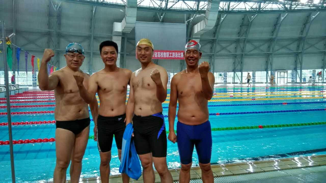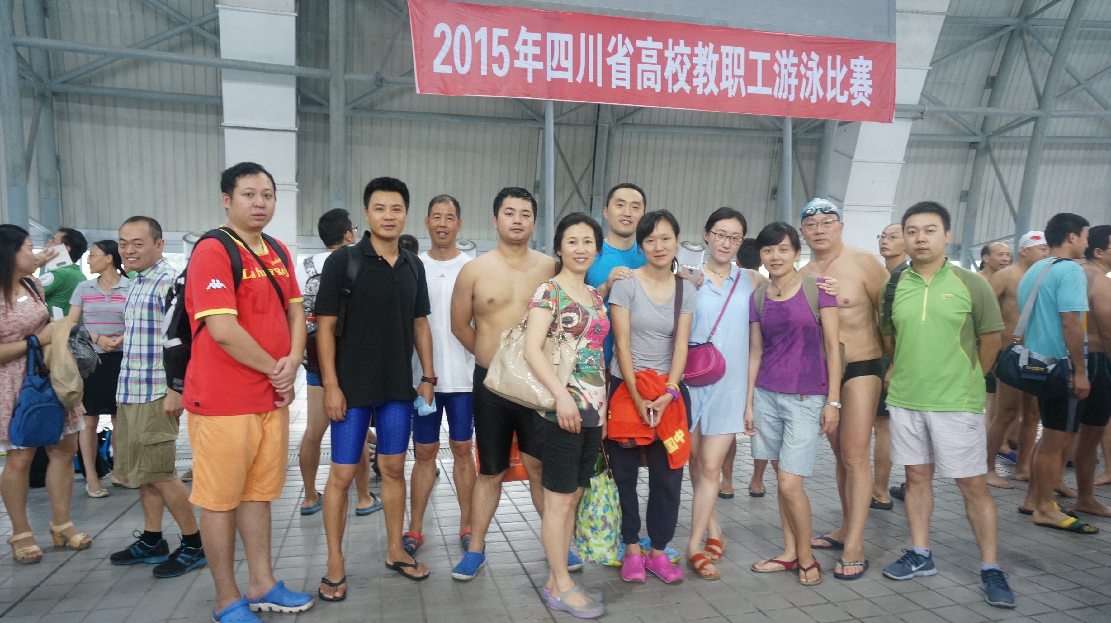 由四川省委教育工委、省教育厅、省教科文卫工会主办、成都体育学院和电子科技大学承办的“2015年四川省高校教职工游泳比赛”于7月11日在电子科技大学清水河校区游泳馆顺利举行,共有来自全省20余所高校的运动员参加了此项赛事。我校派出了由“飞鱼”教工游泳俱乐部成员组成的代表队参加了赛事所有个人单项和男女A组4*50米自由泳接力比赛。经过激烈角逐,我校罗敏老师获得女子B组50米自由泳第三名和50米蛙泳第三名,刘杨俊老师获得男子A组100米蛙泳第六名,女子团体获得A组4*50米自由泳接力第五名,男子团体获得A组4*50米自由泳接力第七名的好成绩,充分展示了我校教职工良好的精神风貌,为学校赢得了荣誉。