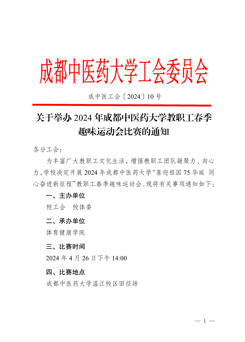 上一条:关于举办成都中医药大学第七届教职工 篮球比赛的通知