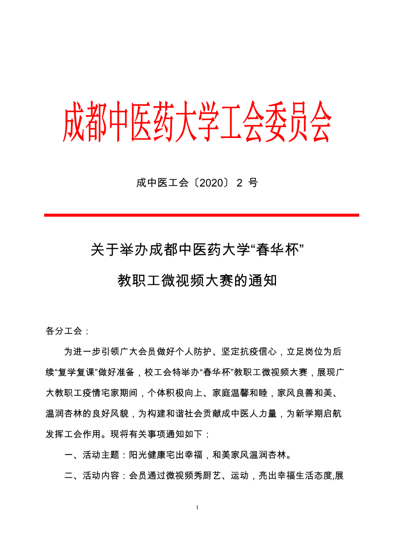 关于举办成都中医药大学“春华杯”微视频大赛的通知