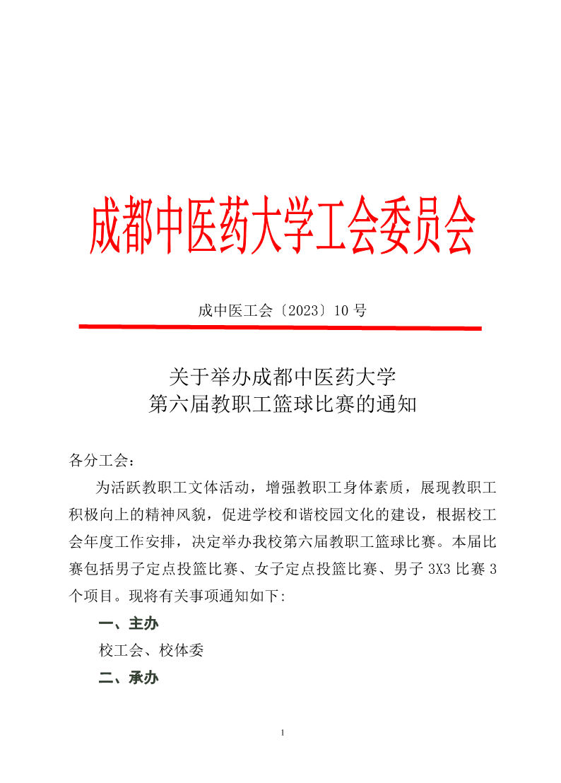 202310红关于举办成都中医药大学第六届教职工篮球比赛的通知