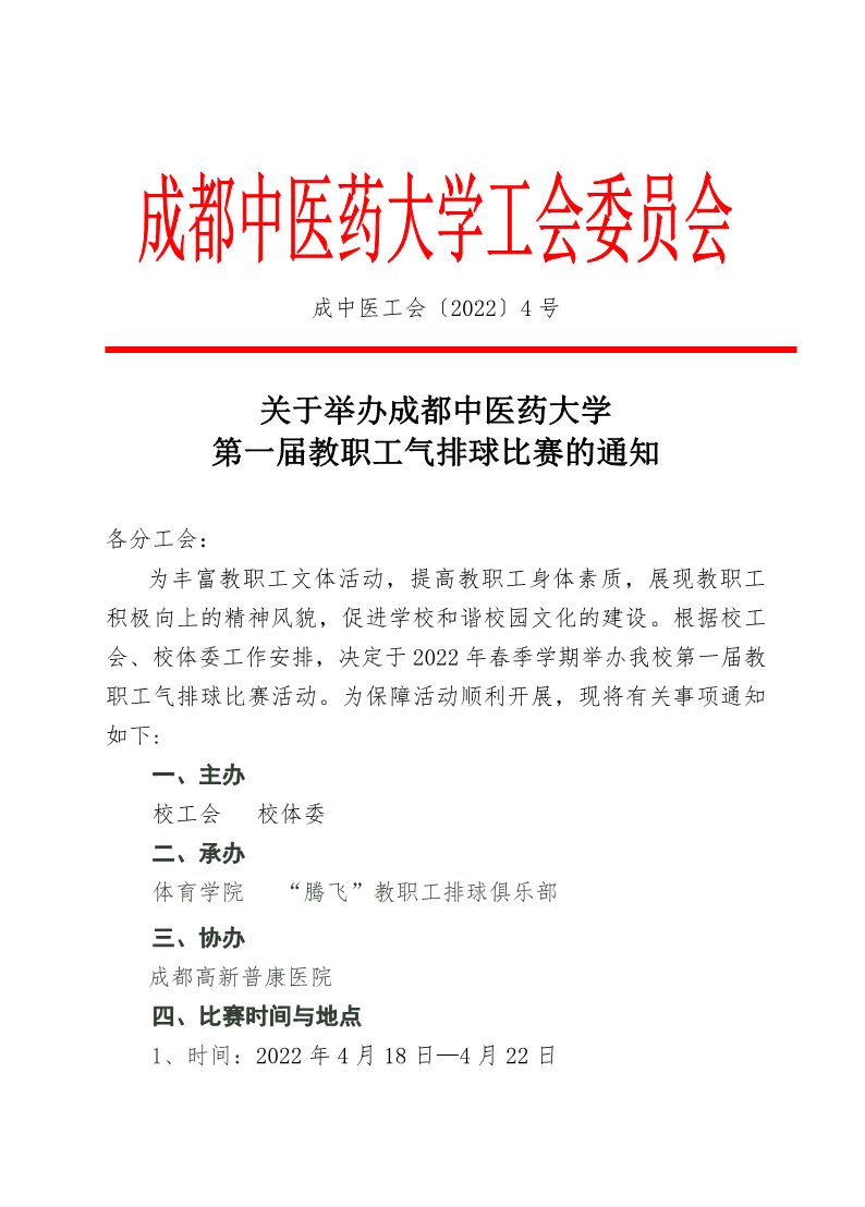 关于举办成都中医药大学2022年春季运动会教职工广播体操比赛的方案
