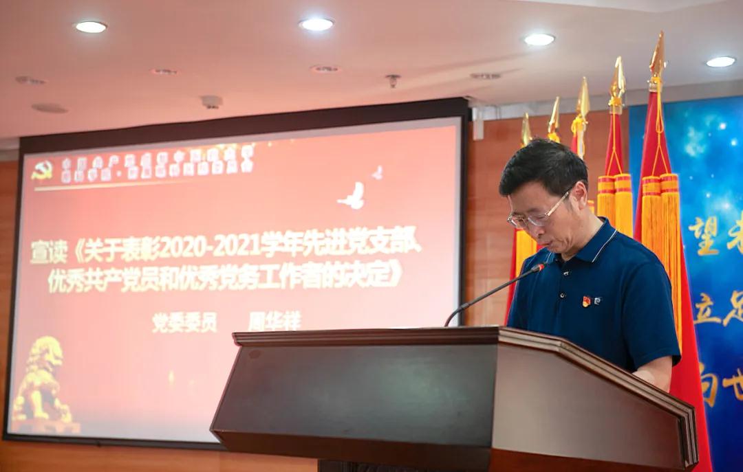 ▲中共成都中医药大学眼科学院/附属眼科医院党委委员周华祥宣读《关于表彰2020-2021年度先进党支部、优秀共产党员和优秀党务工作者的决定》