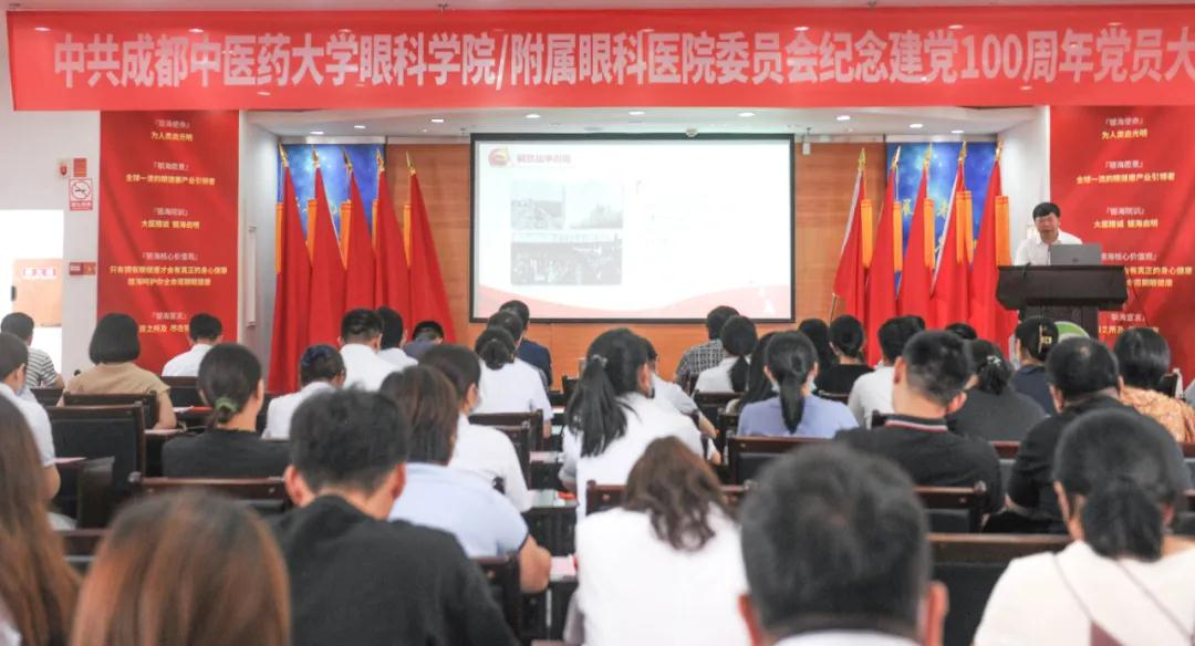 一百年风雨兼程,一世纪沧桑巨变。6月28日下午14点,中共成都中医药大学眼科学院/附属眼科医院党委在银海眼科医院六楼学术报告厅隆重举行"奋斗百年路、启航新征程"庆祝中国共产党建党100周年党员大会。中共成都中医药大学眼科学院/附属眼科医院党委班子成员、全体党员、民主党派代表、眼科学院学生代表、医院各科室部门负责人共计100余人参加会议。
